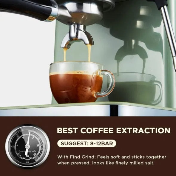 ALL KINDS OF COFFEE - Brew a cup of espresso, cappuccino, or latte and so on at home with this vintage espresso coffee machine just like a barista. 15 bar professional pressure extracts quality cups of coffee, providing you multiple options to creat your favourite coffee drinks according to your personal taste preferences.
