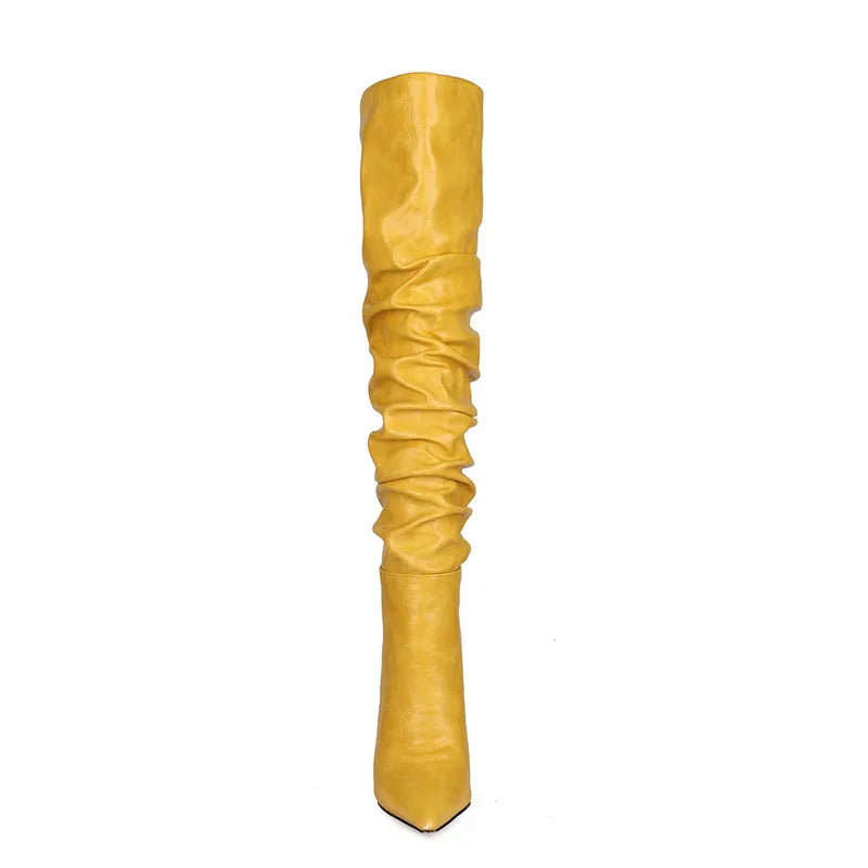 European and American Style Pointed Toe Pleated Knee-length Boots Stiletto Super High Heel Women's Shoes Size 43 Women Shoes