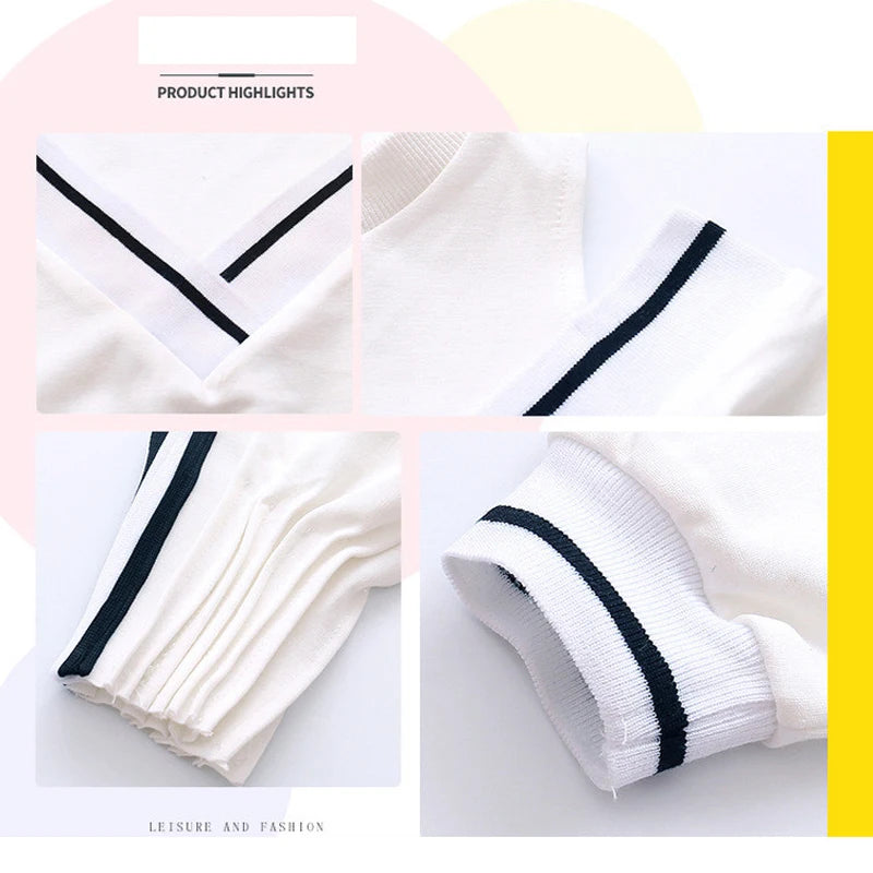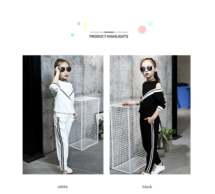 Fashion Big Girls Sports Suits Off Shoulder Black and White Clothing Set for Teenage Autumn Tracksuit Kids Plus Size Sportswear