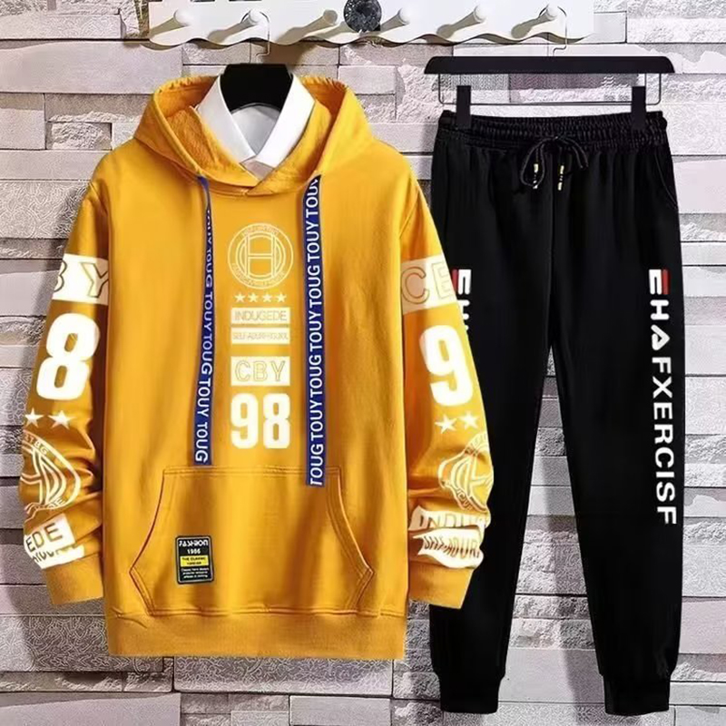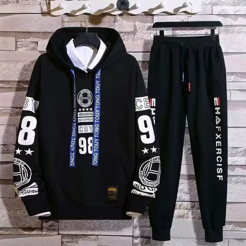 Fashion Men's Set Autumn Winter Elastic Waist Trousers+Long sleeve Pullover Sweatshirt Set Casual Korean Style Men Clothing Set