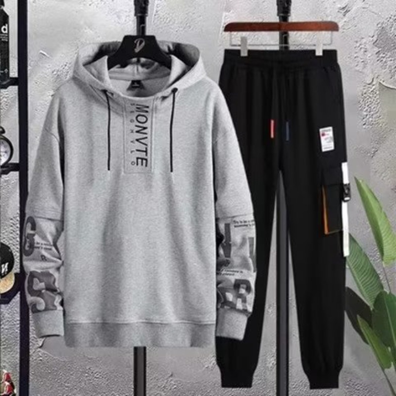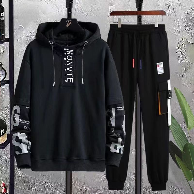 Fashion Men's Sets Spring Autumn Korean Elastic Waist Trouser+Print Pullover Sweatshirt Sets Men Casual Men Clothing Hoodies Set