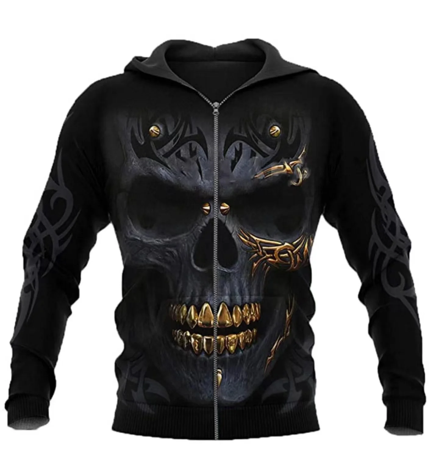 Fashion Sweatshirts Long Sleeve Hoodie Coat Hoodies Men's hoodie 3D gold tooth skull print zipper hoodie casual cardigan