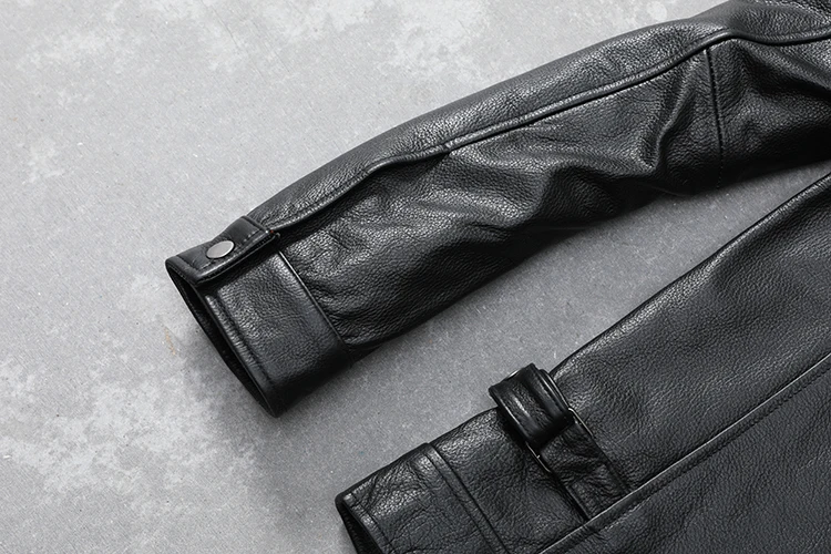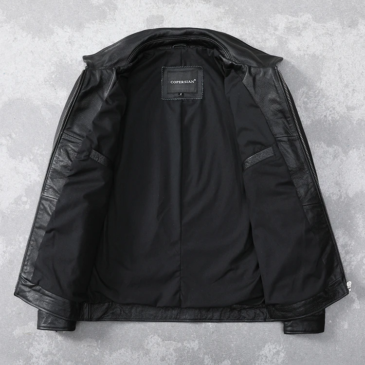 Free natural.Promoción.Dermis Mens casual black genuine leather jacket.slim business cowhide coat.plus father's leather cloth.