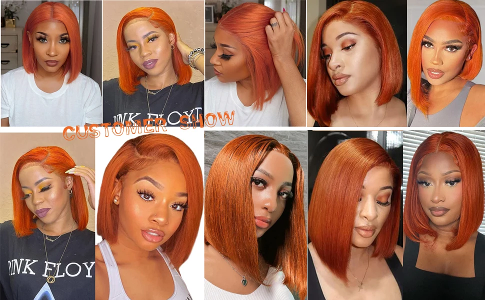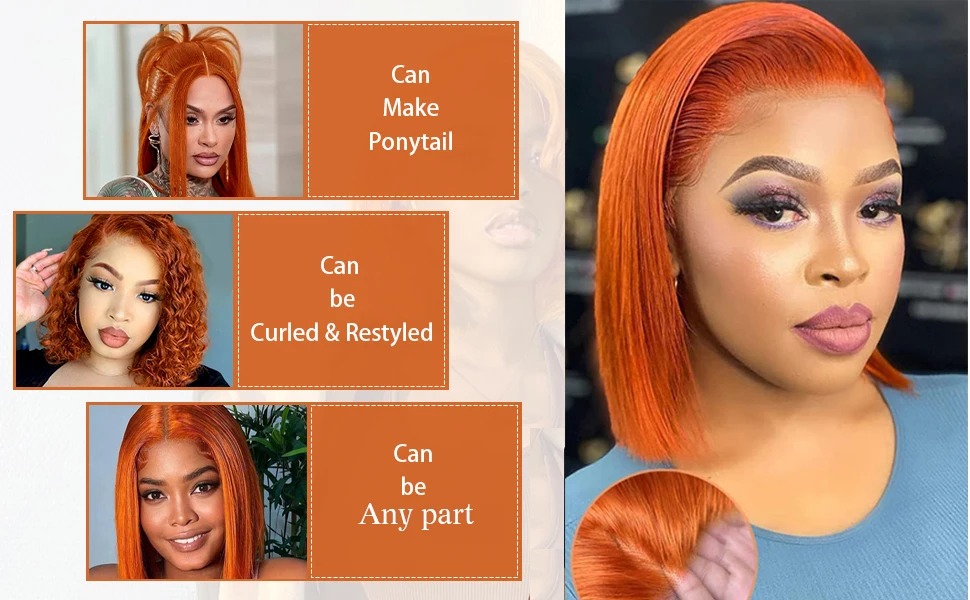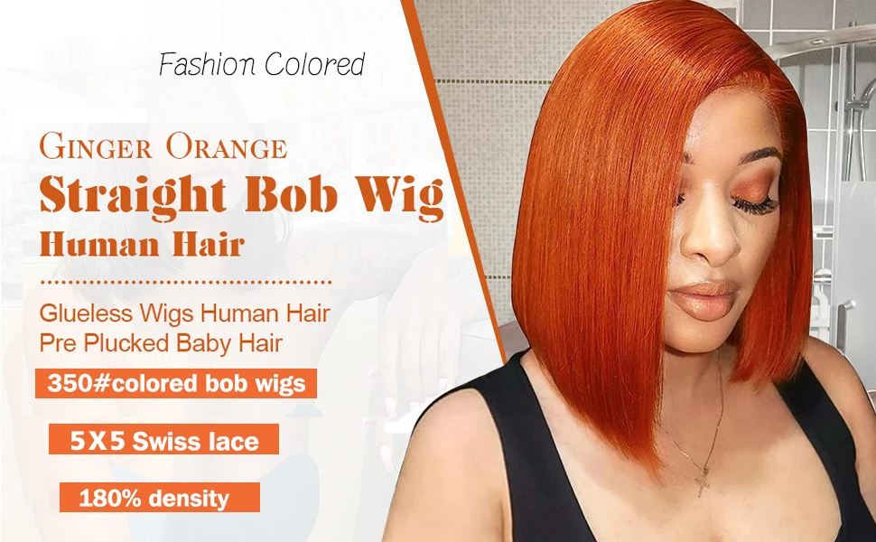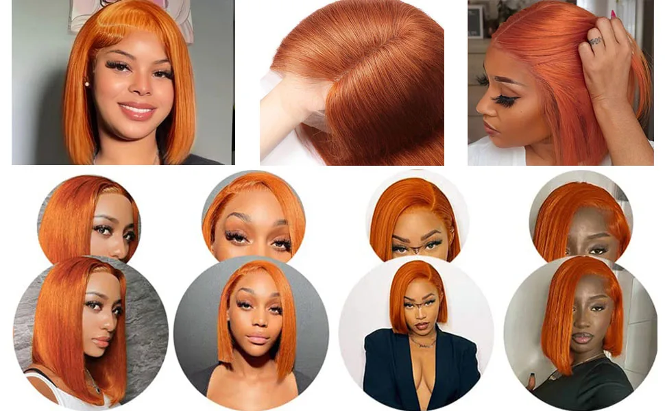 Ginger Orange Bob Wig Human Hair 13x4 Straight Lace Front Wigs Human Hair Pre Plucked 180% Density 350# Colored Bob Wig
