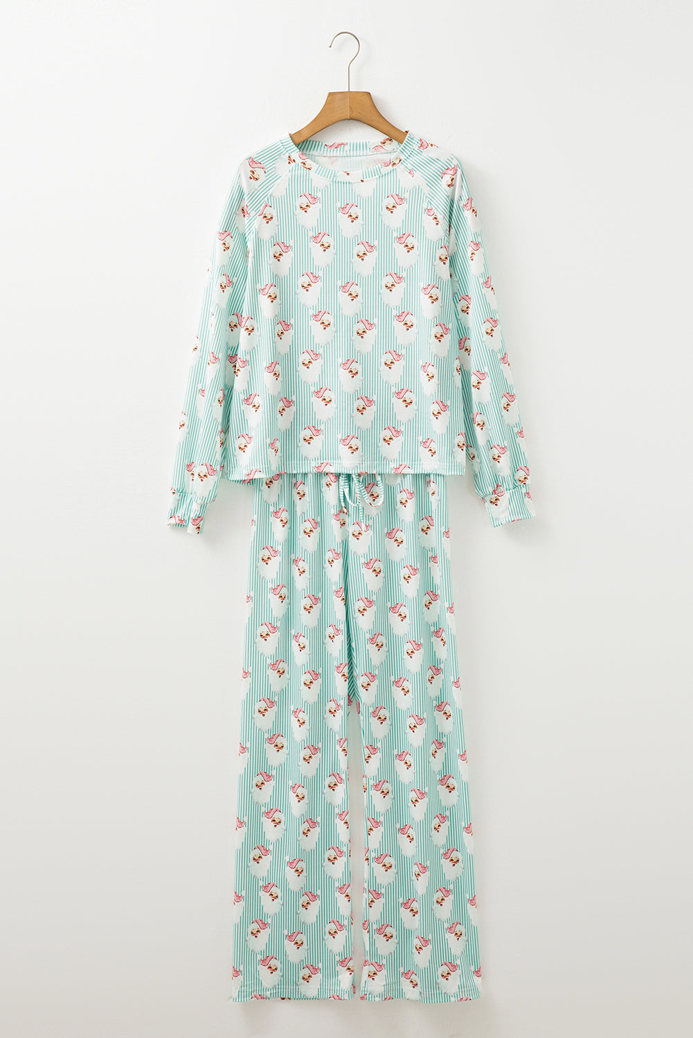 Green Santa Claus Striped Print Loose Fit Two Piece Lounge Set