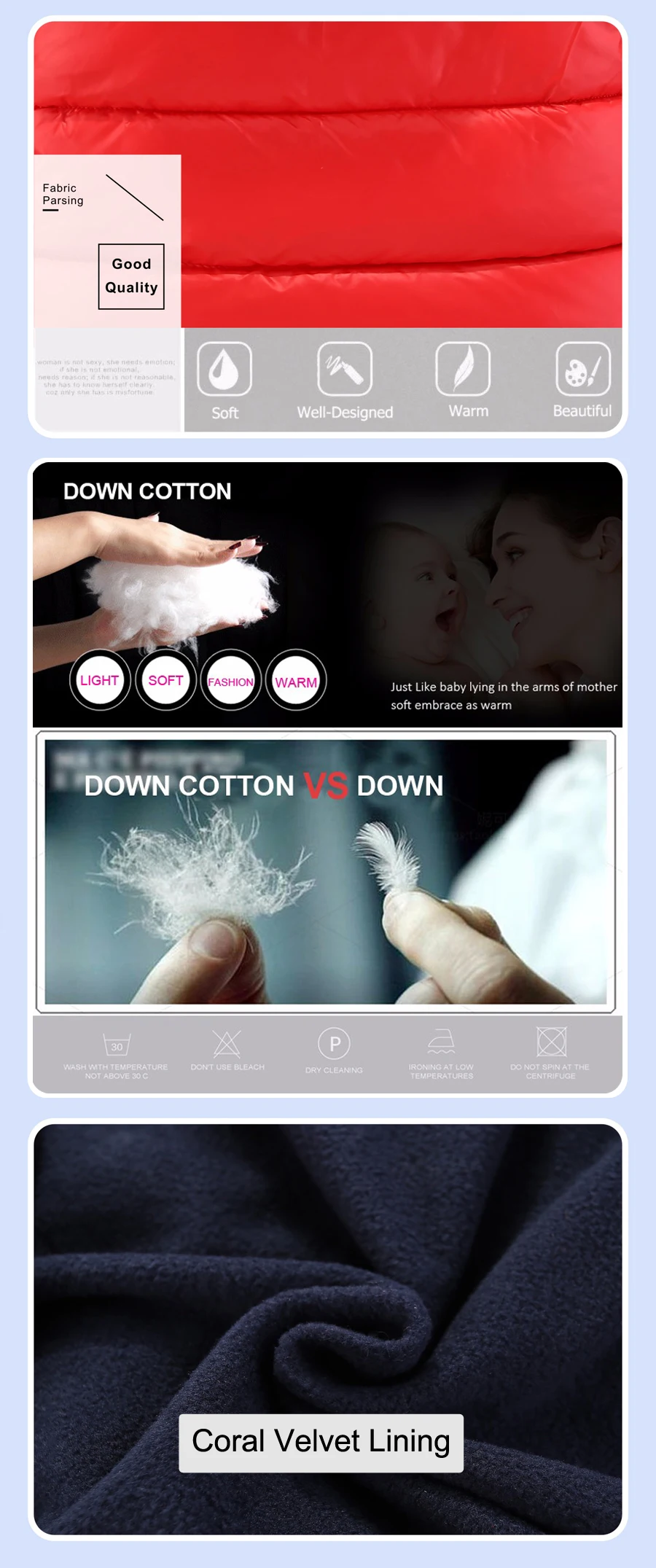 Filler : Down cotton,(polyester)