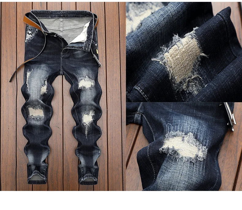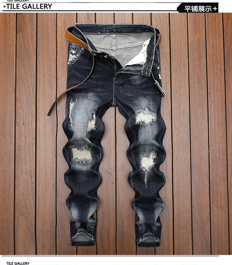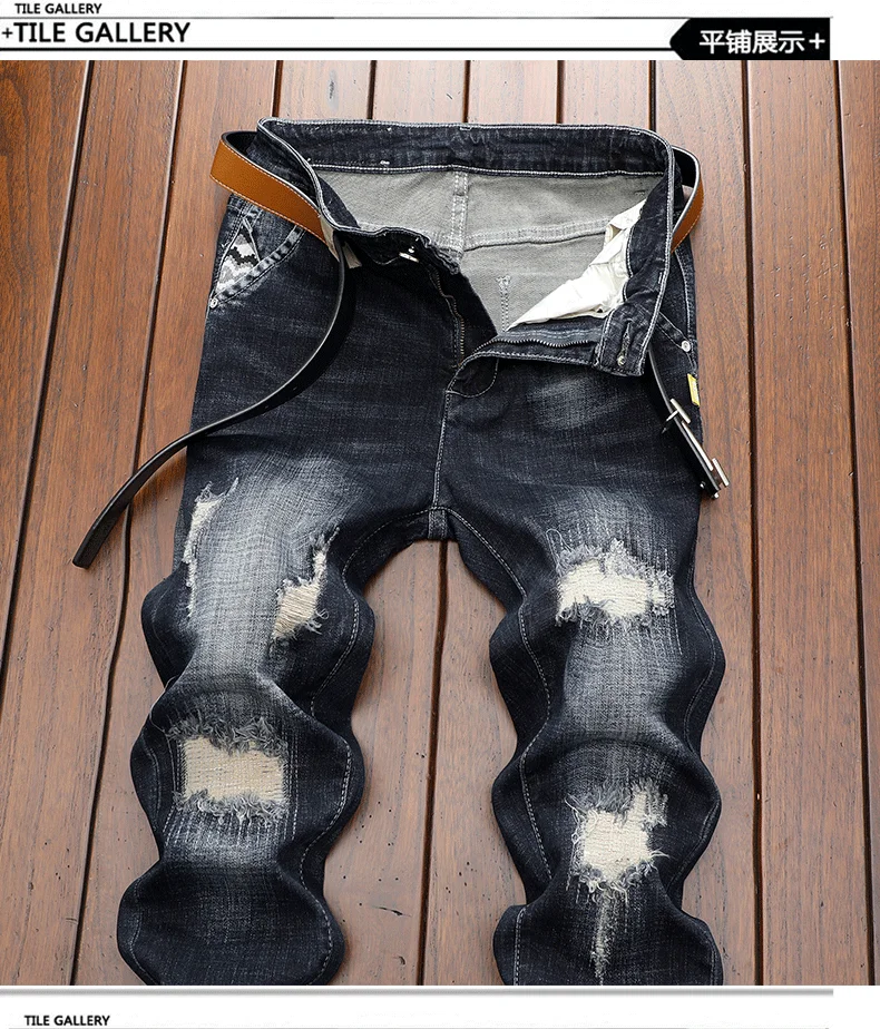 Jean Homme Men Jeans Ripped Denim Pants Trend Brand Trousers For Men Streetwear Simple Design Man Motorcycle Biker Destroyed