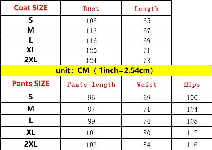 Package Includes:1*Pcs Coat or Pants