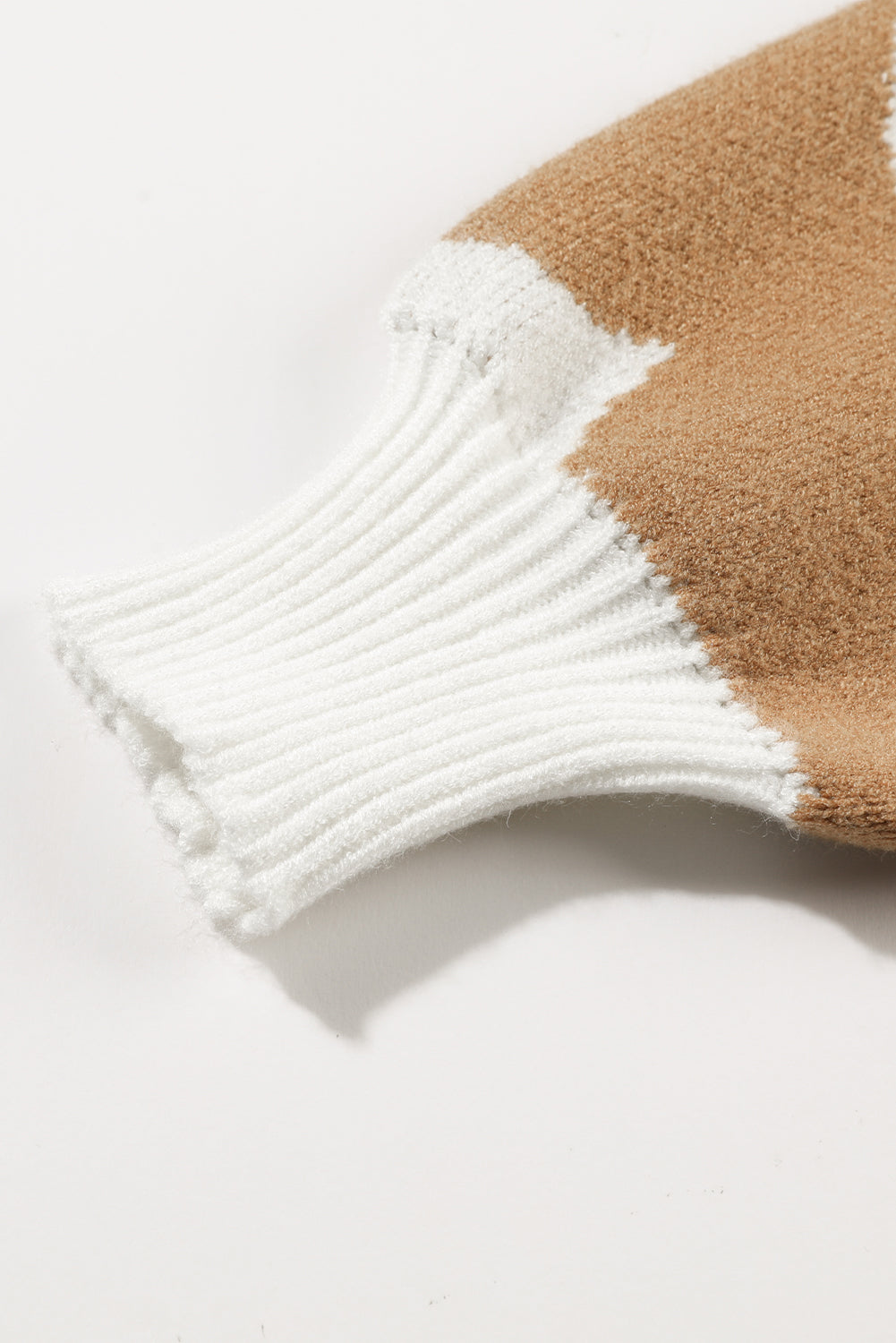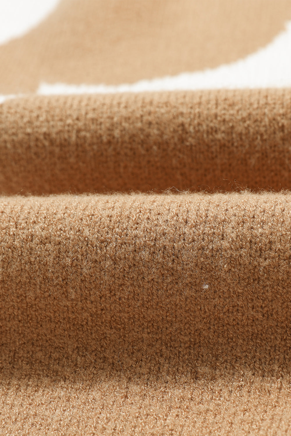 Khaki Big Flower Pattern Drop Shoulder Sweater