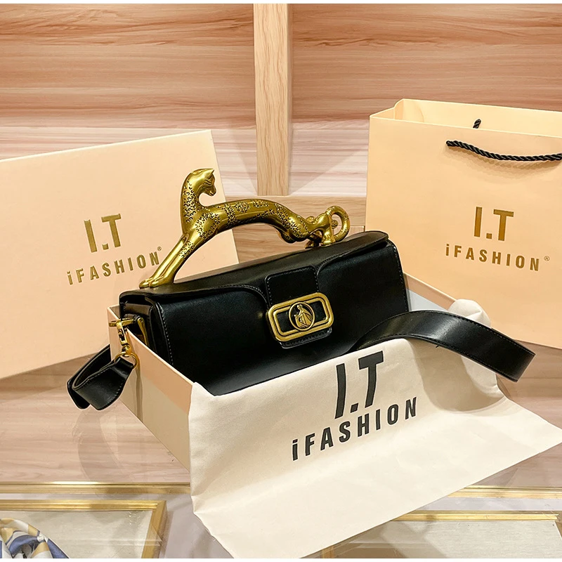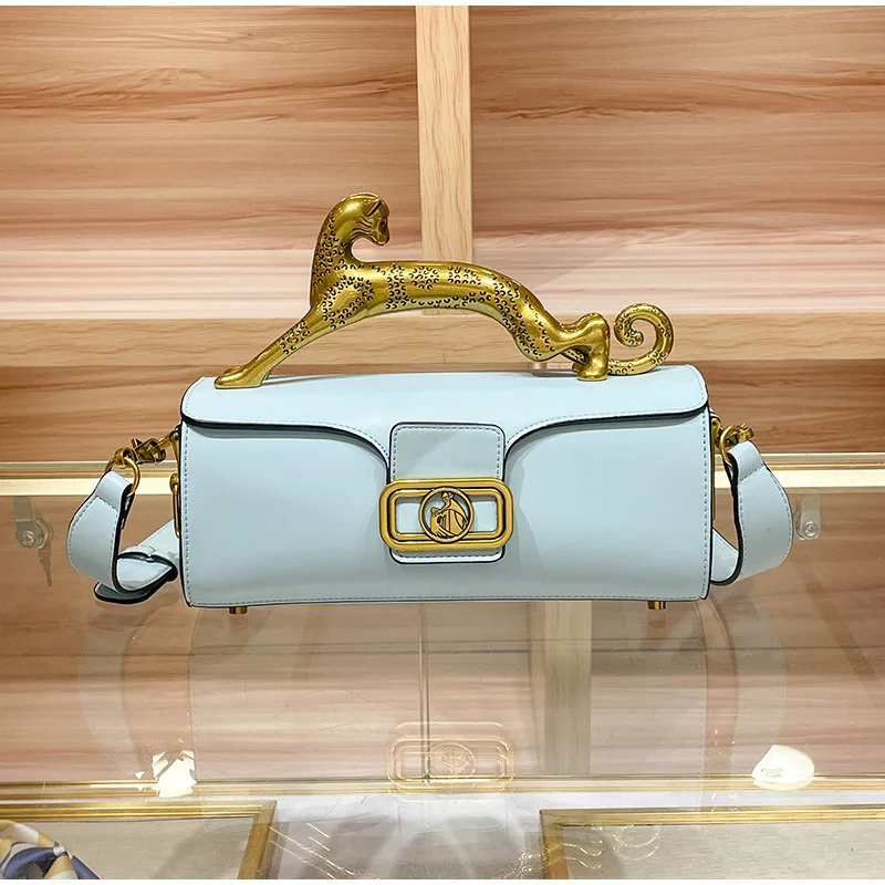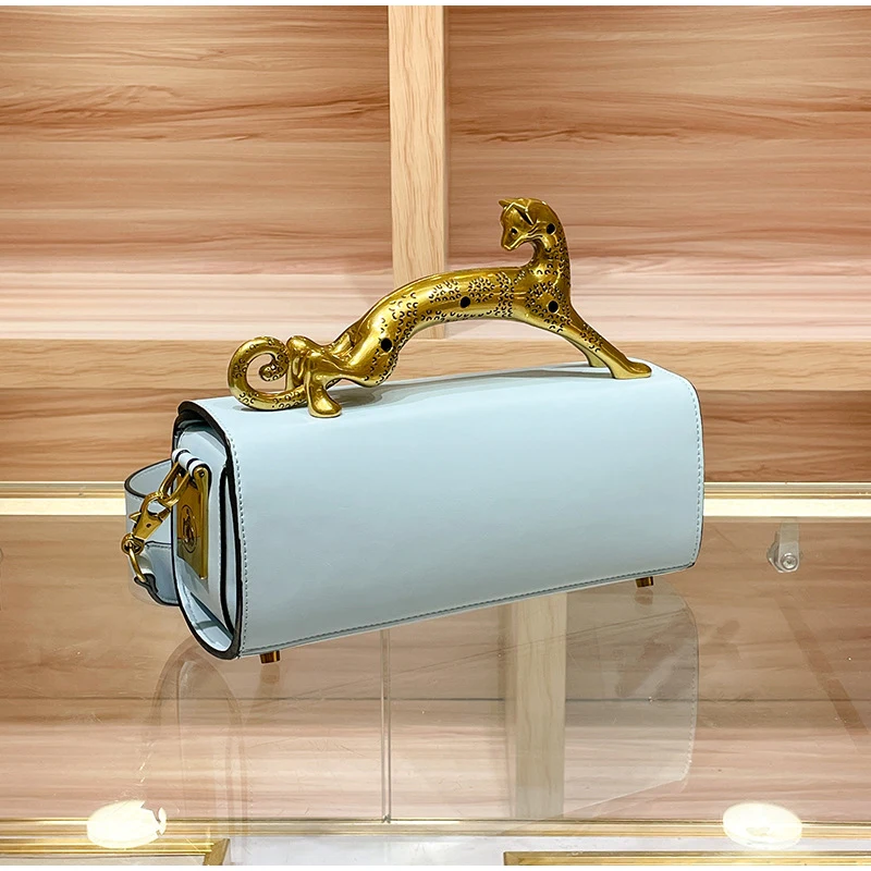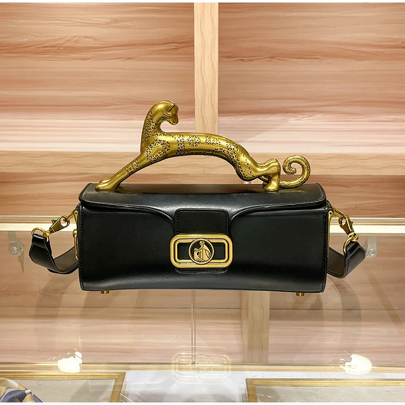 Luxury Brand Leopard Handle Women's Handbag Designer Real Leather Crossbody Shoulder Bag 2023 Ladies Cowhide Versatile Hand Bags
