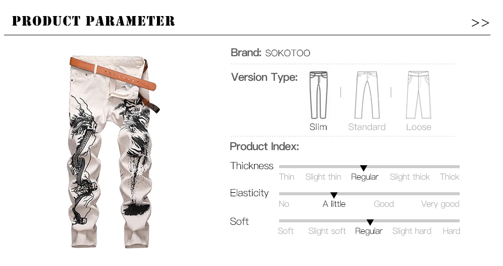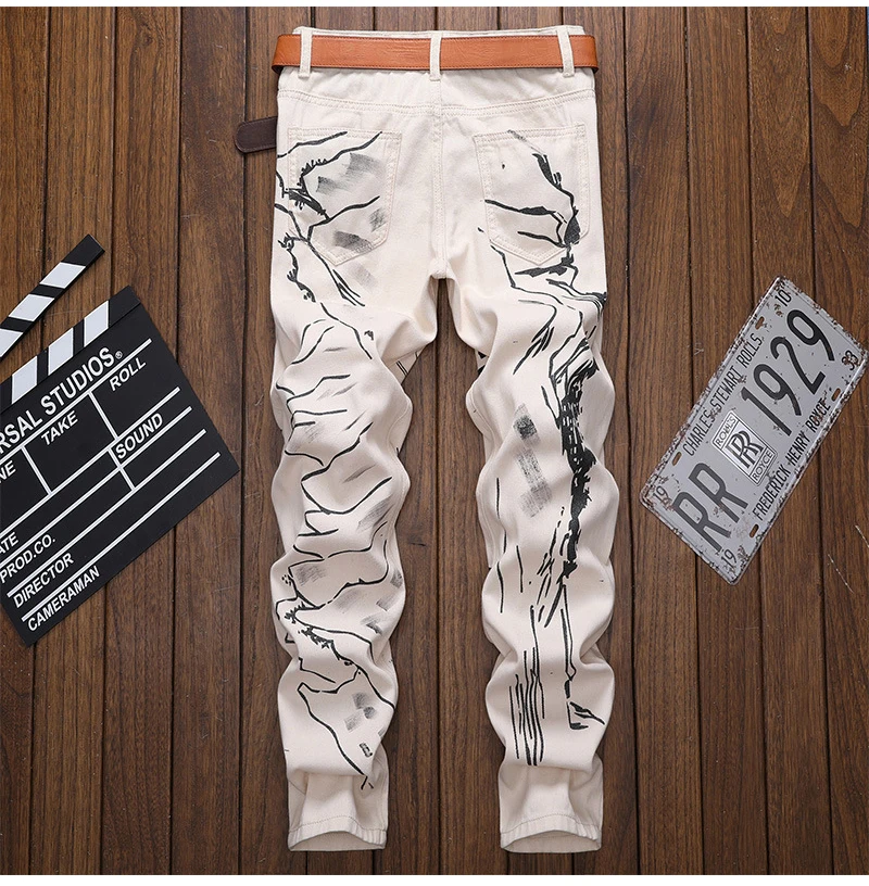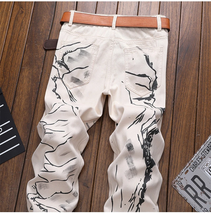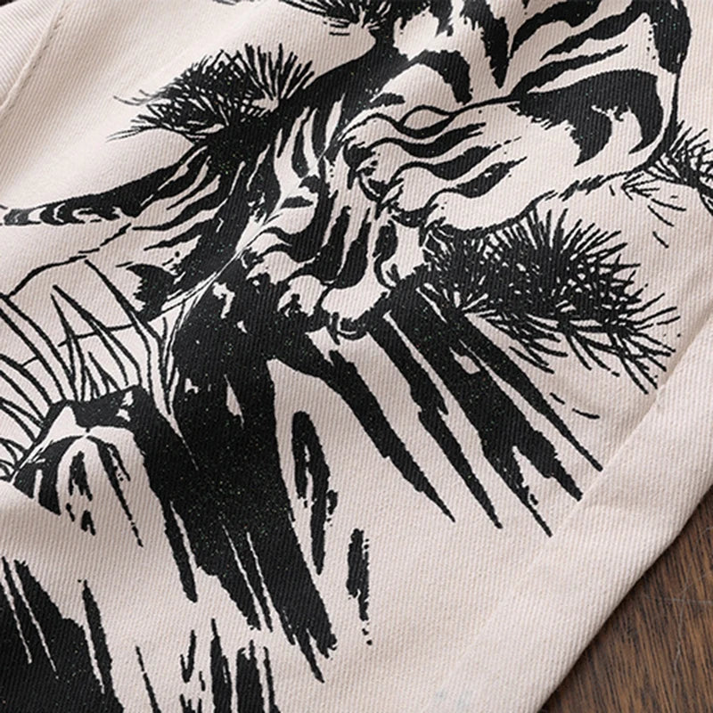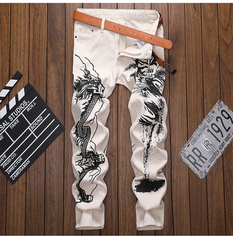 Men's great wall tiger printed jeans Fashion khaki denim slim straight pants