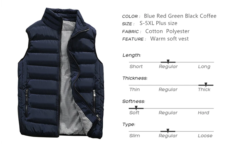 Mens Jacket Sleeveless Vest Winter Fashion Casual Slim Coat Brand Clothing Vests Cotton-Padded Men's Vest Men Waistcoat Big Size