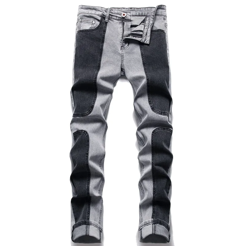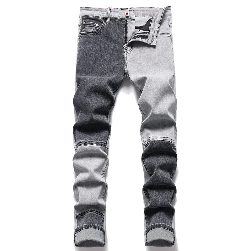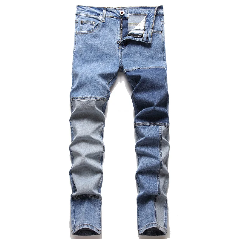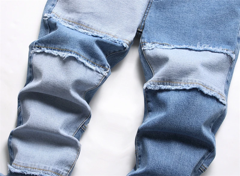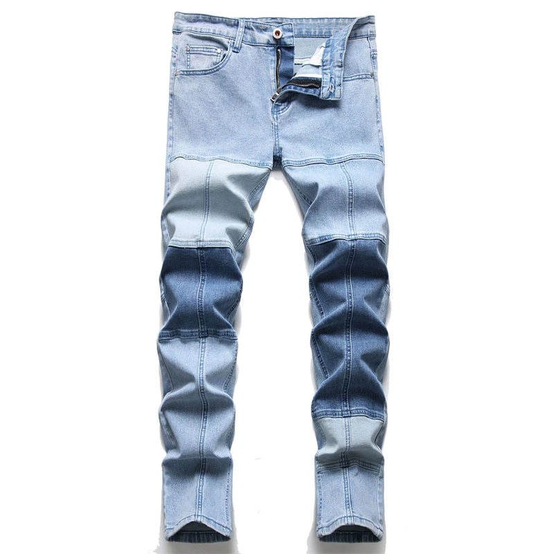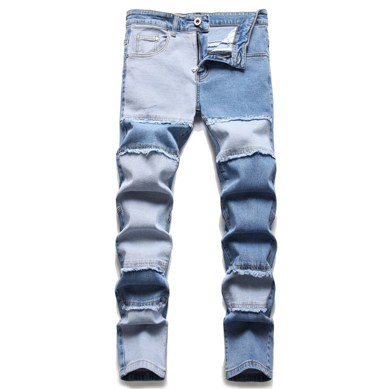 Men's Jeans Casual Biker Pants Designer Splice Patchwork Slim Skinny Blue Jeans Plus Size 38 40 Dropshipping