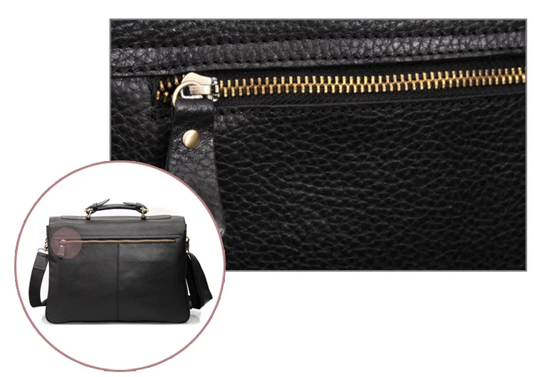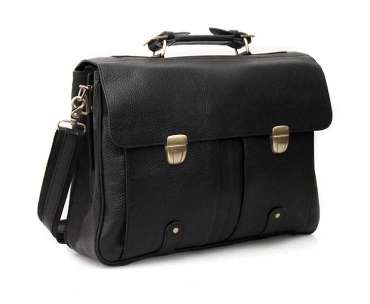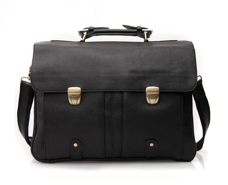 men's leather briefcase men genuine leather briefcases for 15" laptop briefcase tote business Case male man messenger bag Black