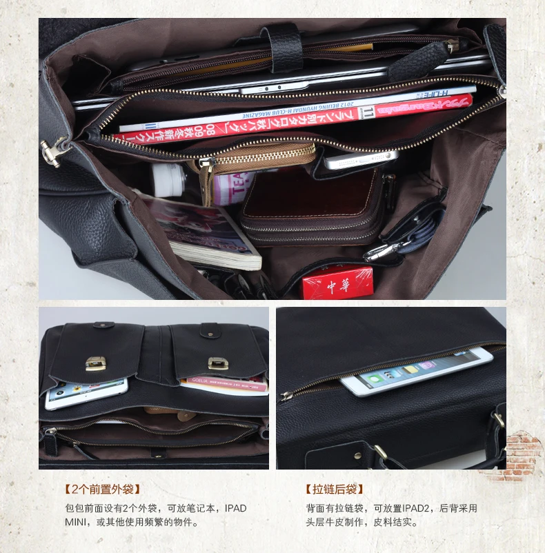 Vintage leather briefcase men genuine leather laptop briefcase tote business bag shoulder bag men messenger bag free shipping USD 149.99/piece