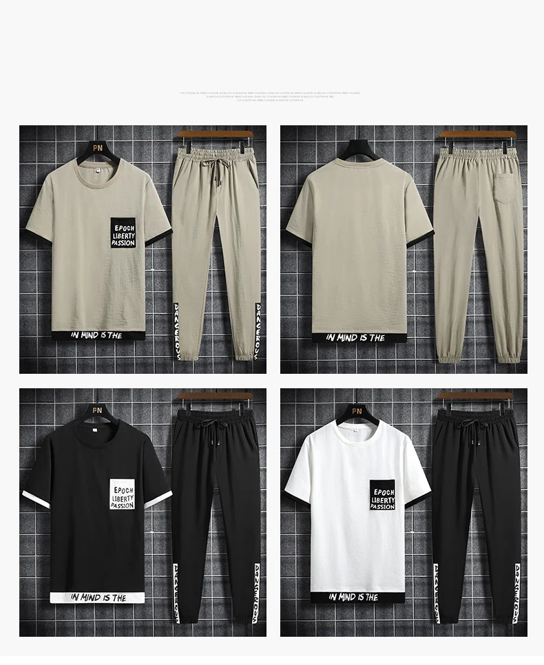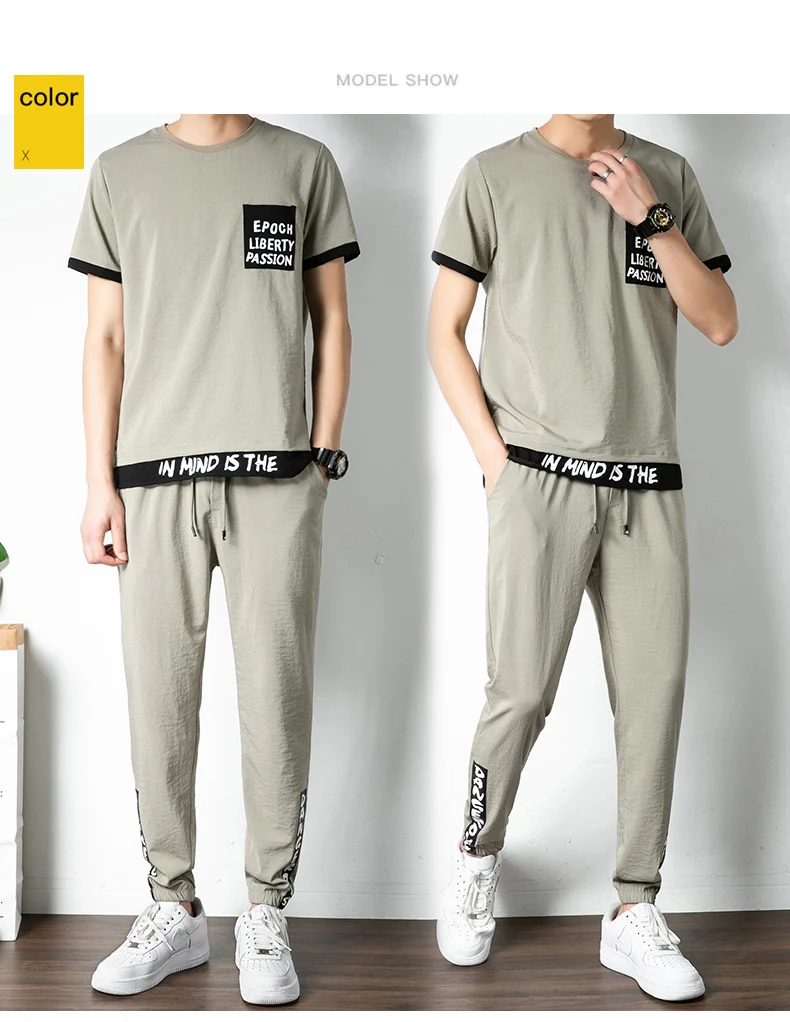 Men's Sets Hip hop Clothes Streetwear Spring Summer Outfit Male T-shirt + Pants Two Pieces Fashion Set Casual Pullover Plus Size