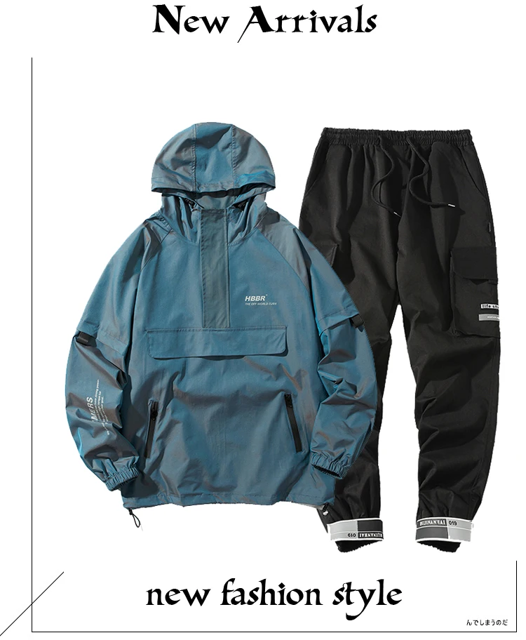 Men's Streetwear Tracksuit Two Piece Set Sweatsuit Polyester Overalls Leisure Suit Hooded Jackets And Hip Hop Harlan Pants