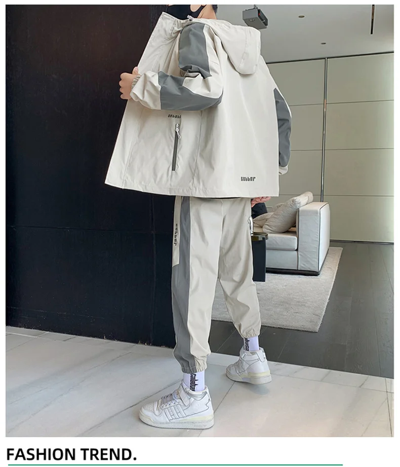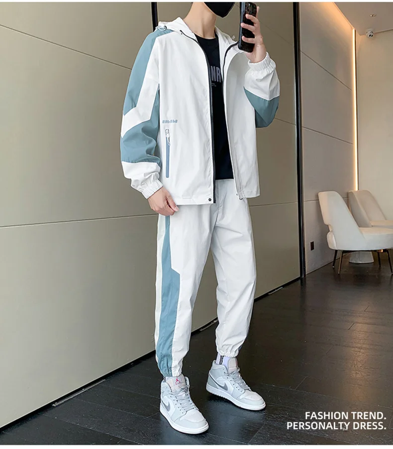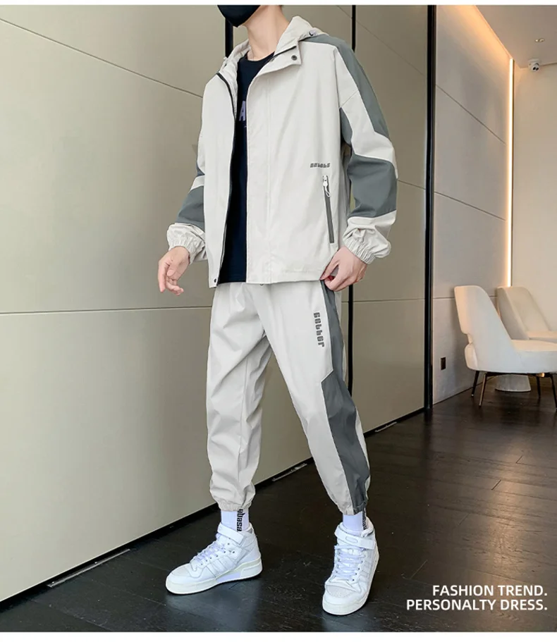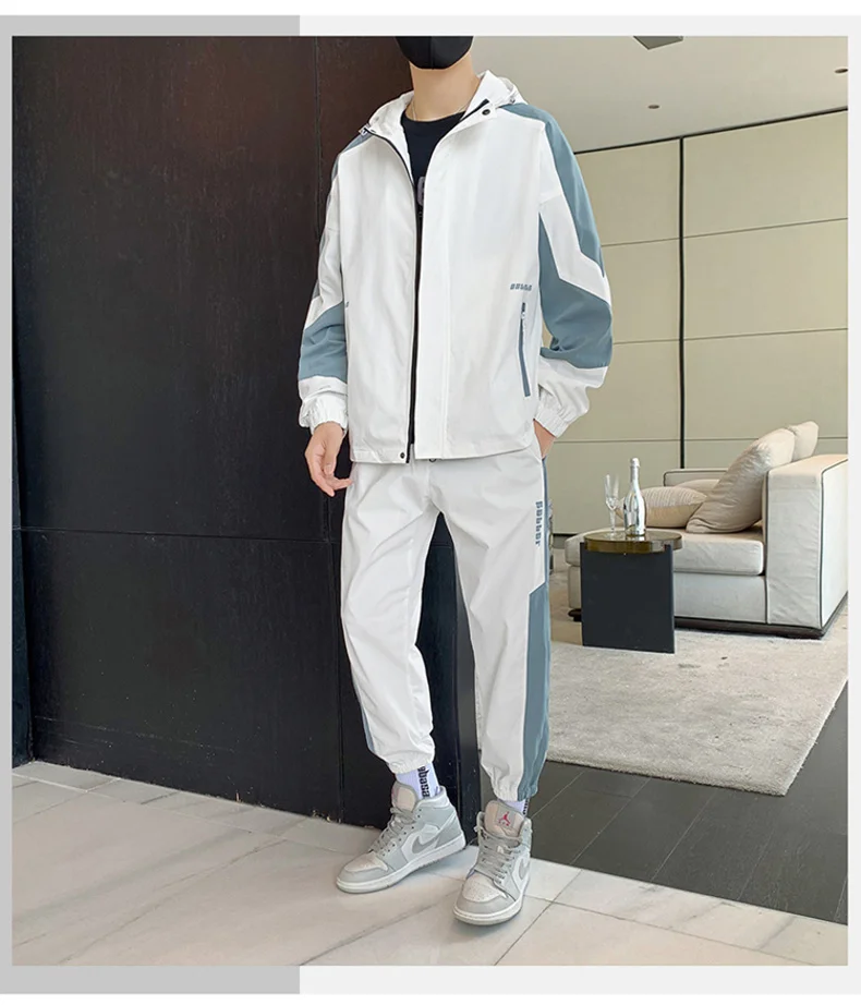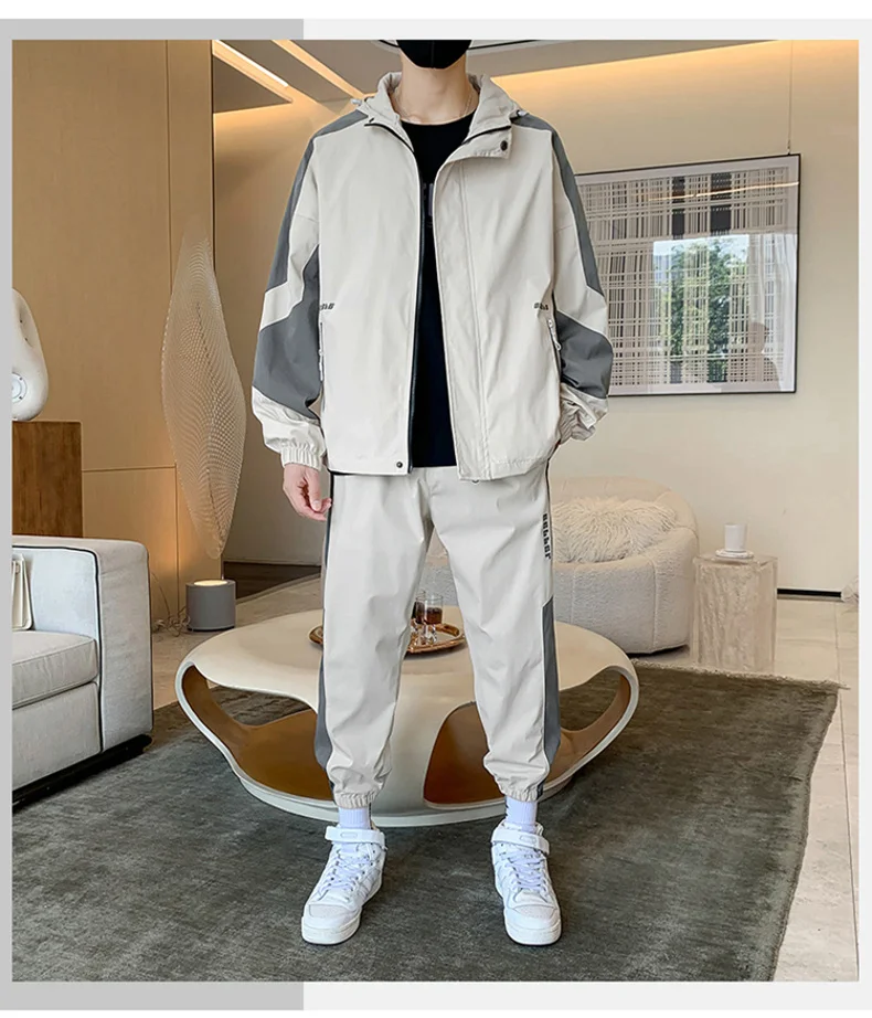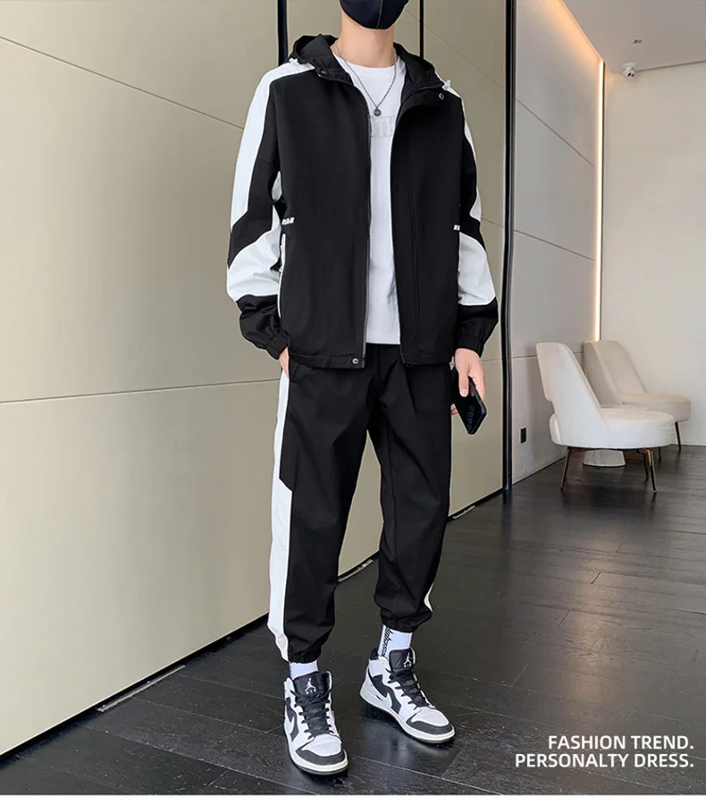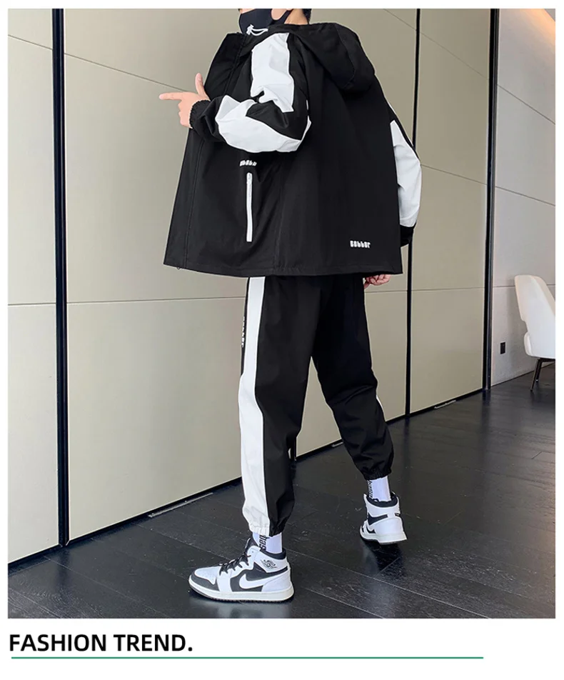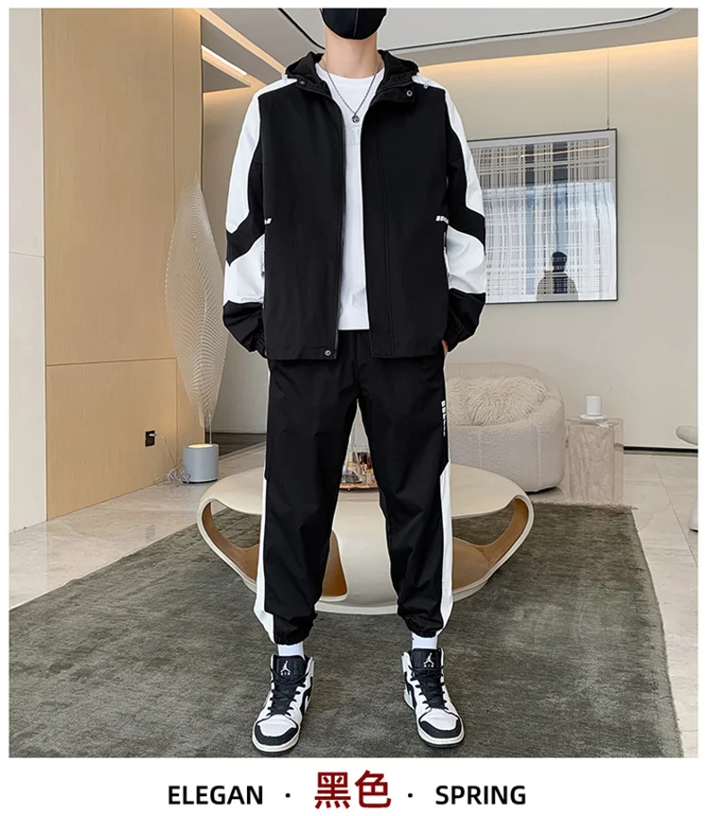 Men's Tracksuit Man Two Piece Set Sweatsuit Polyester Overalls Leisure Suit Hooded Jackets And Hip Hop Harlan Pants
