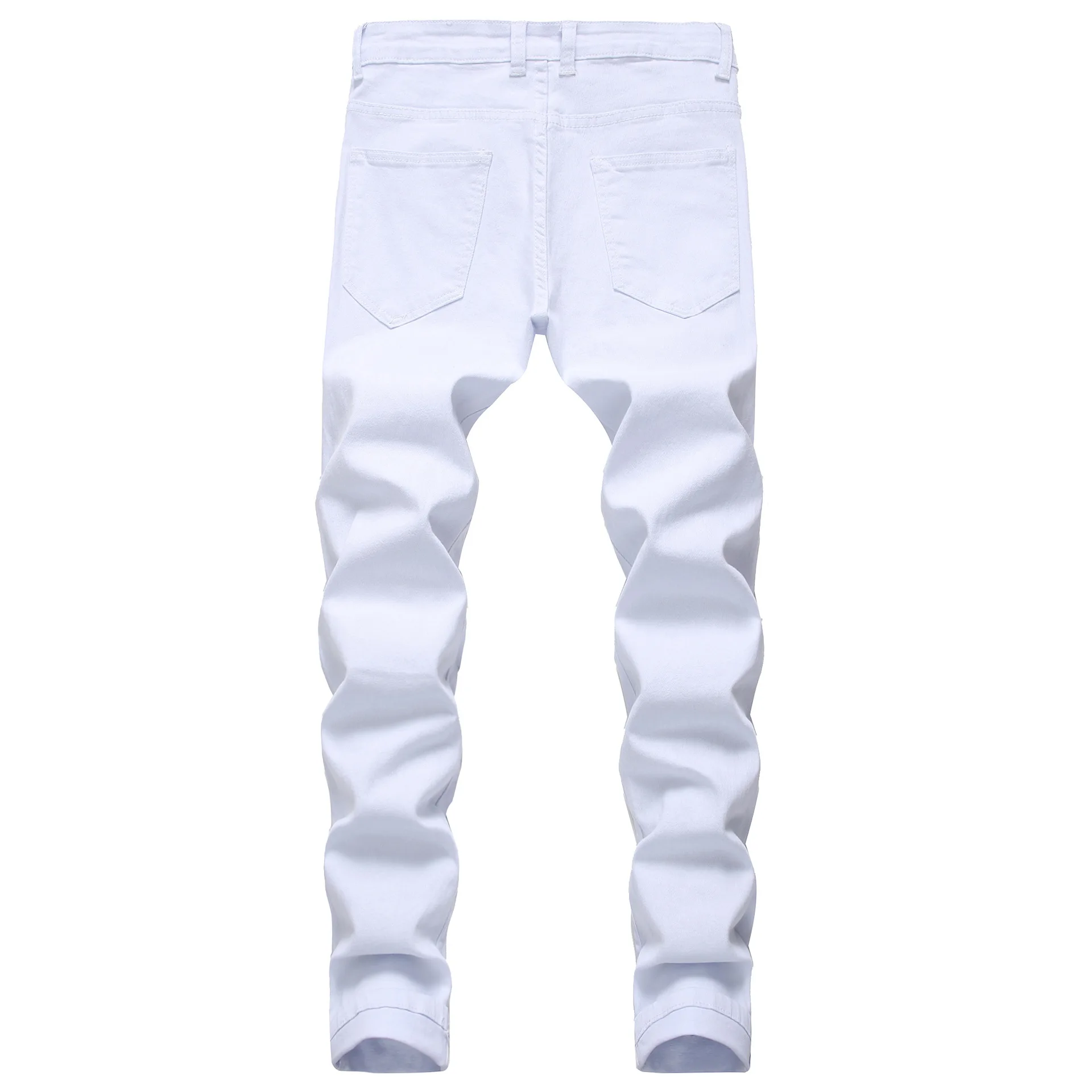New Arrival Men's Cotton Ripped Hole Jeans Casual Slim Skinny White Jeans Men Trousers Fashion Stretch Hip Hop Denim Pants Male