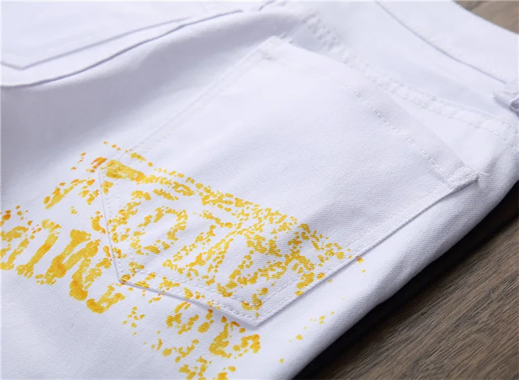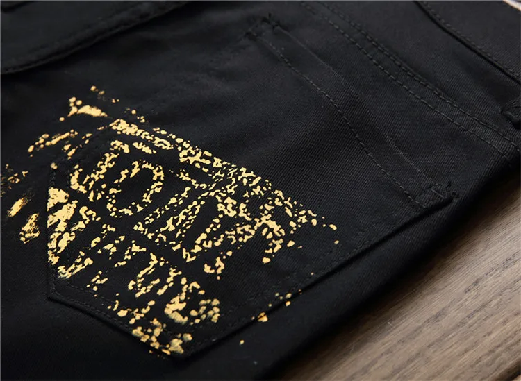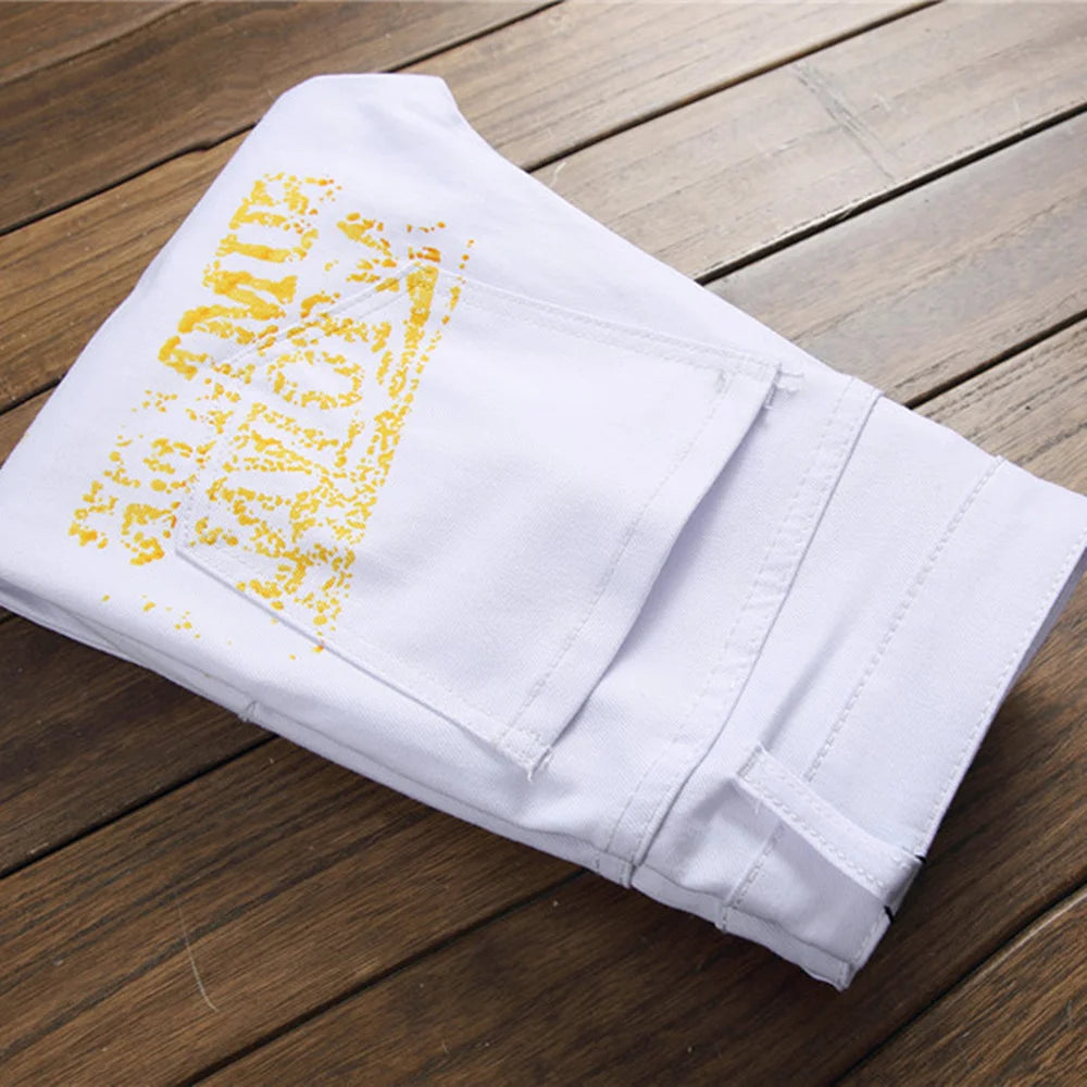 New European-Style Digital Print Men Jeans Slim Fashionable Trousers Stretch Pants Small Feet Casual High Quality Denim Pants