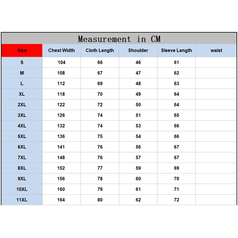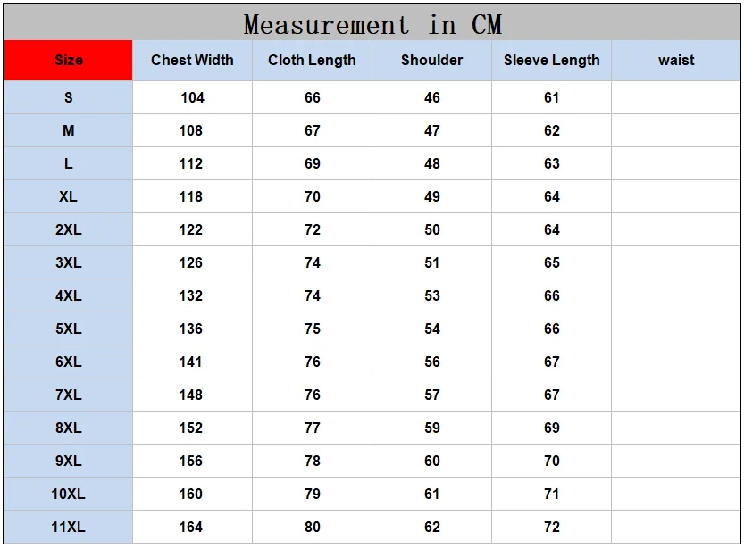 Size: S M L XL 2XL 3XL 4XL 5XL 6XL 7XL