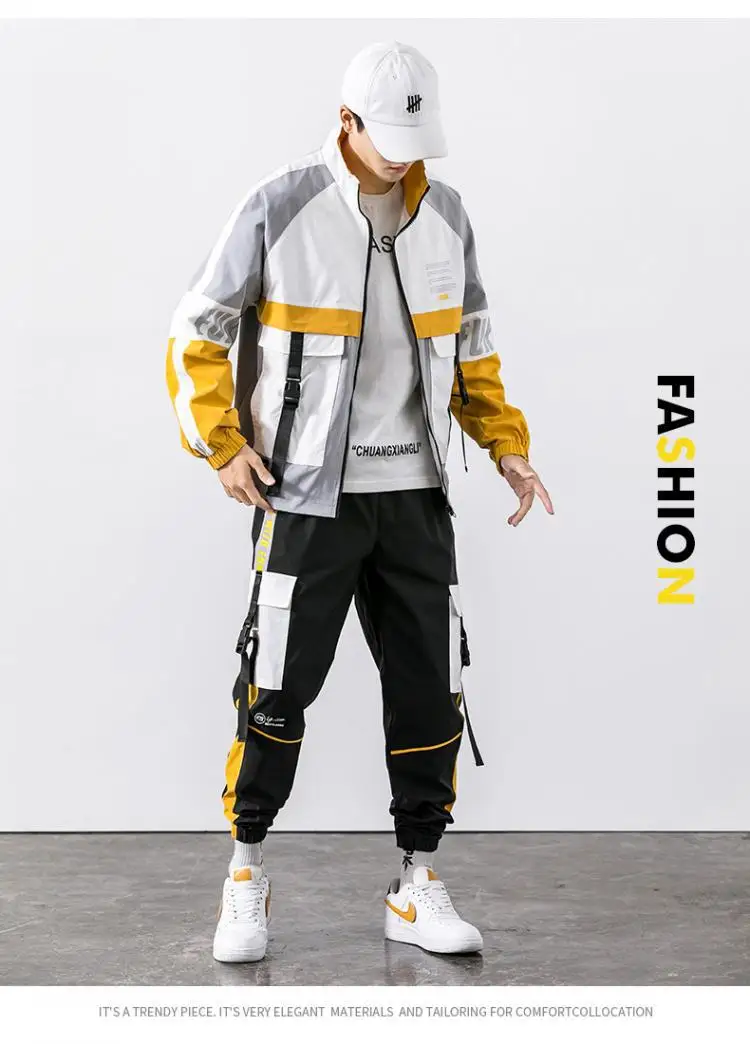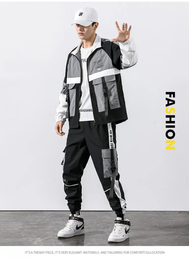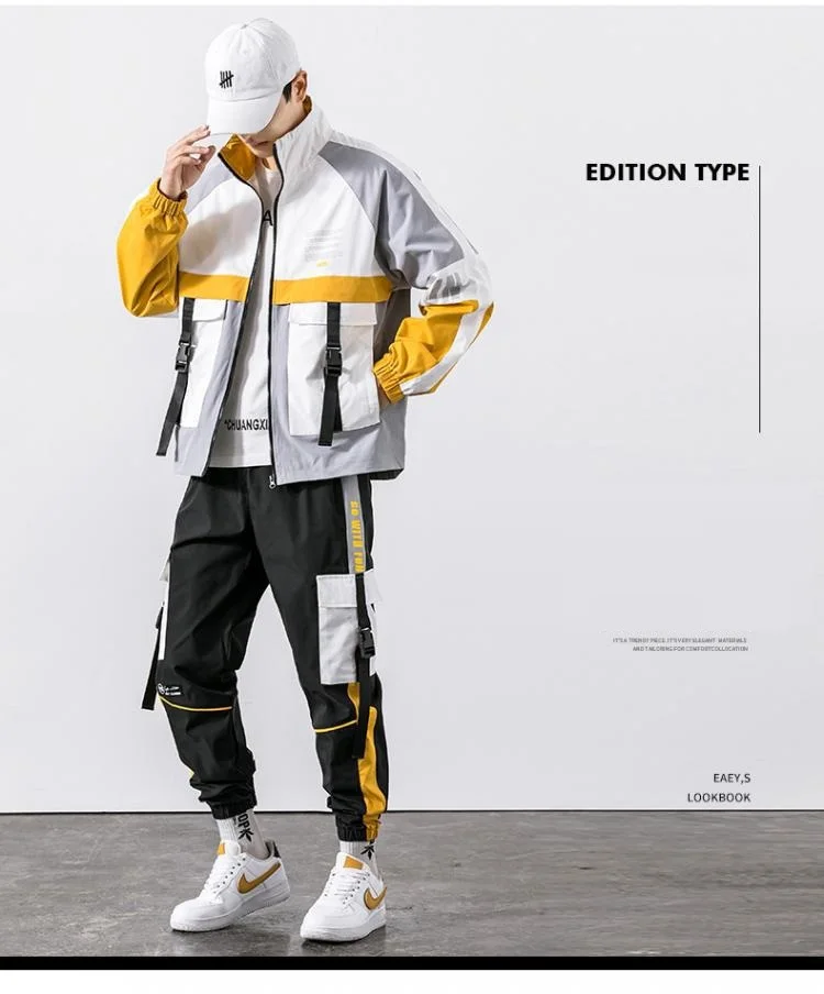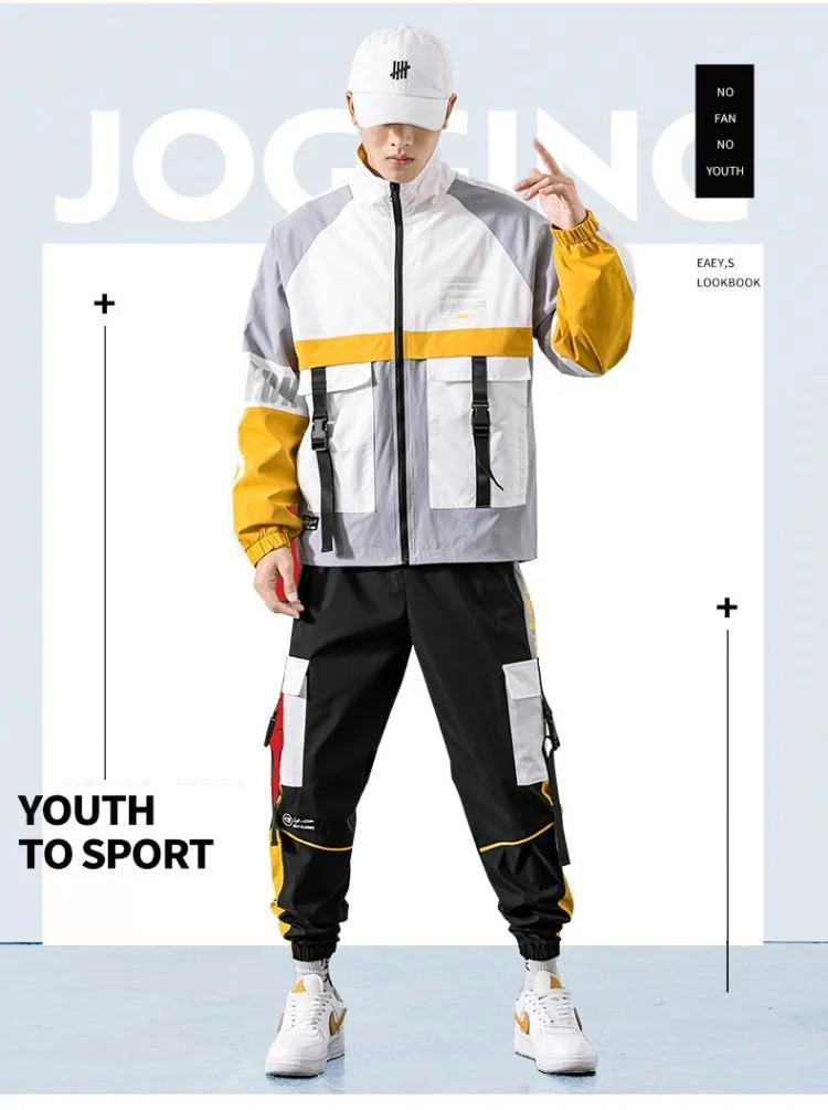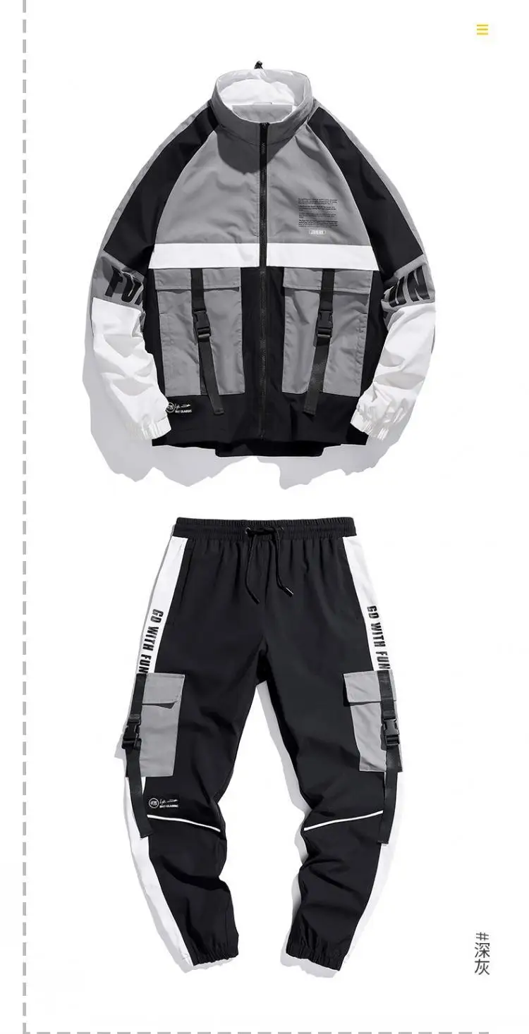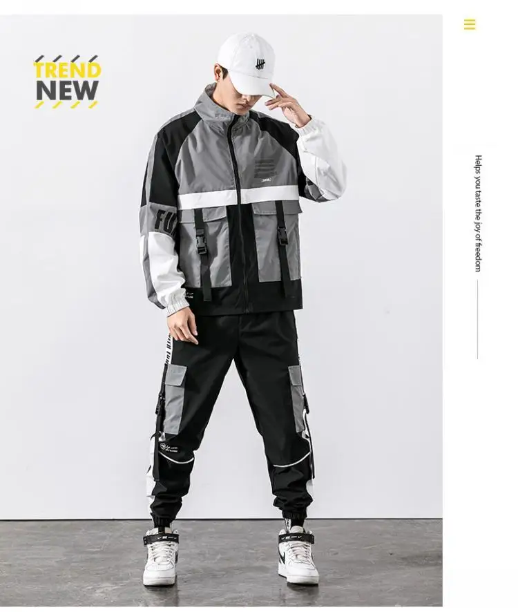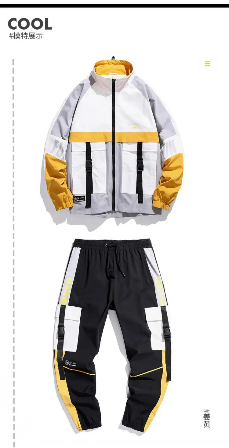 Paneled Contrast Cargo Tracksuit 2 Piece Set Men Outfit Set Spring and Autumn Mens Sweat Suits Korean Style Fashion Clothes
