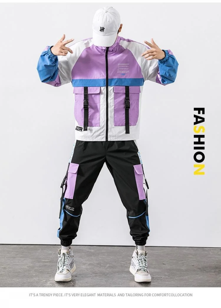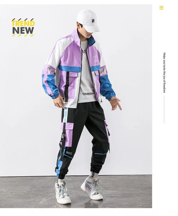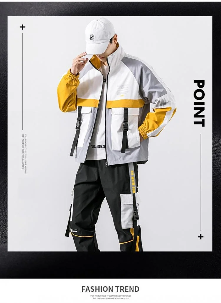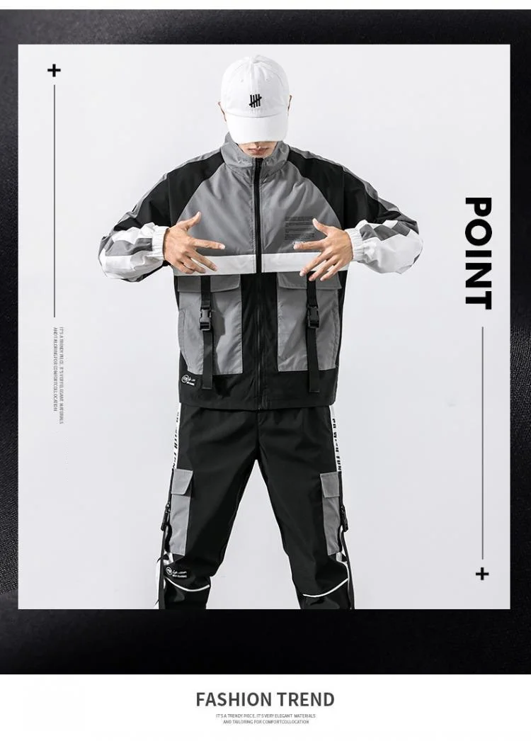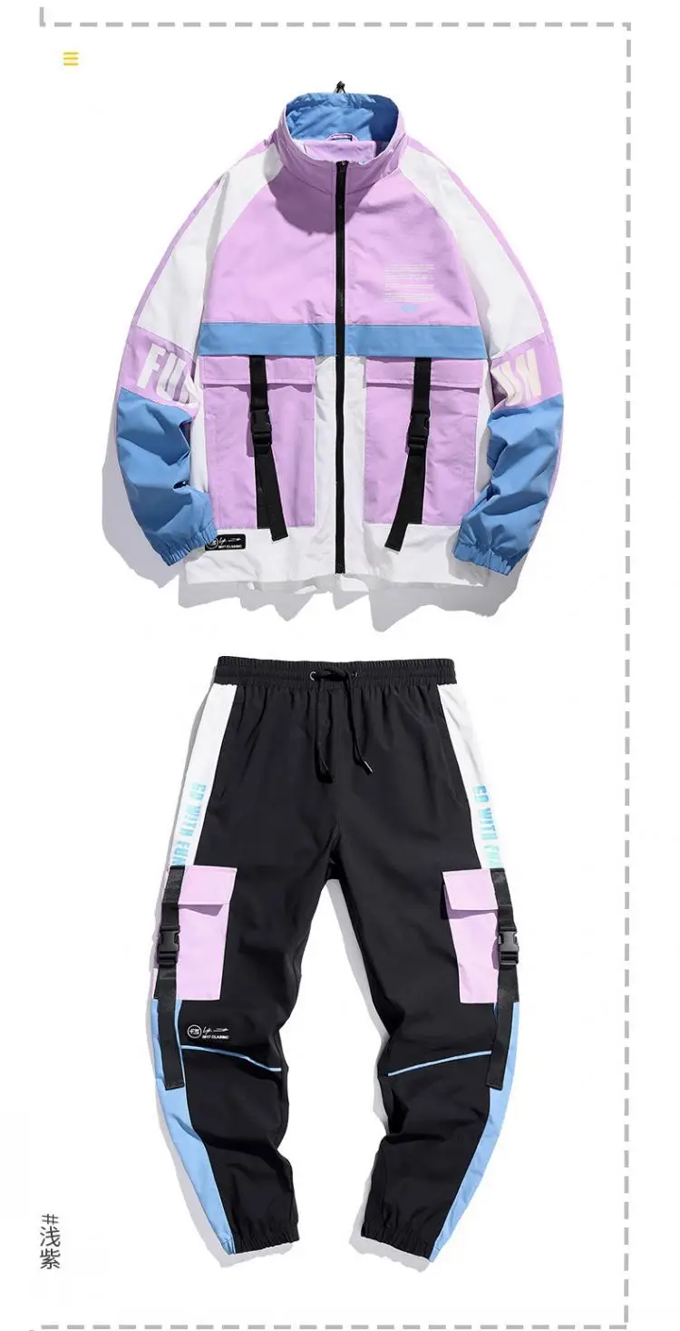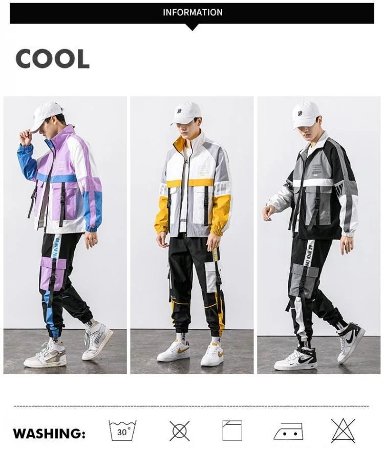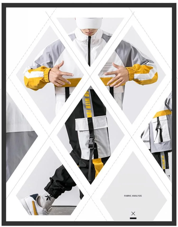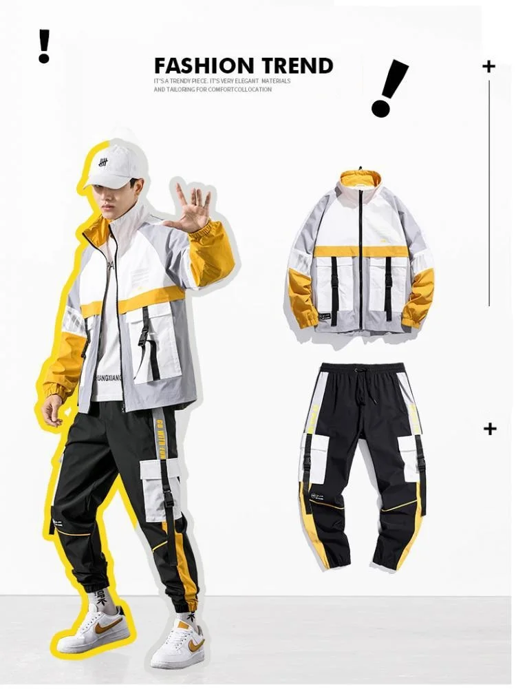 Paneled Contrast Cargo Tracksuit 2 Piece Set Men Outfit Set Spring and Autumn Mens Sweat Suits Korean Style Fashion Clothes