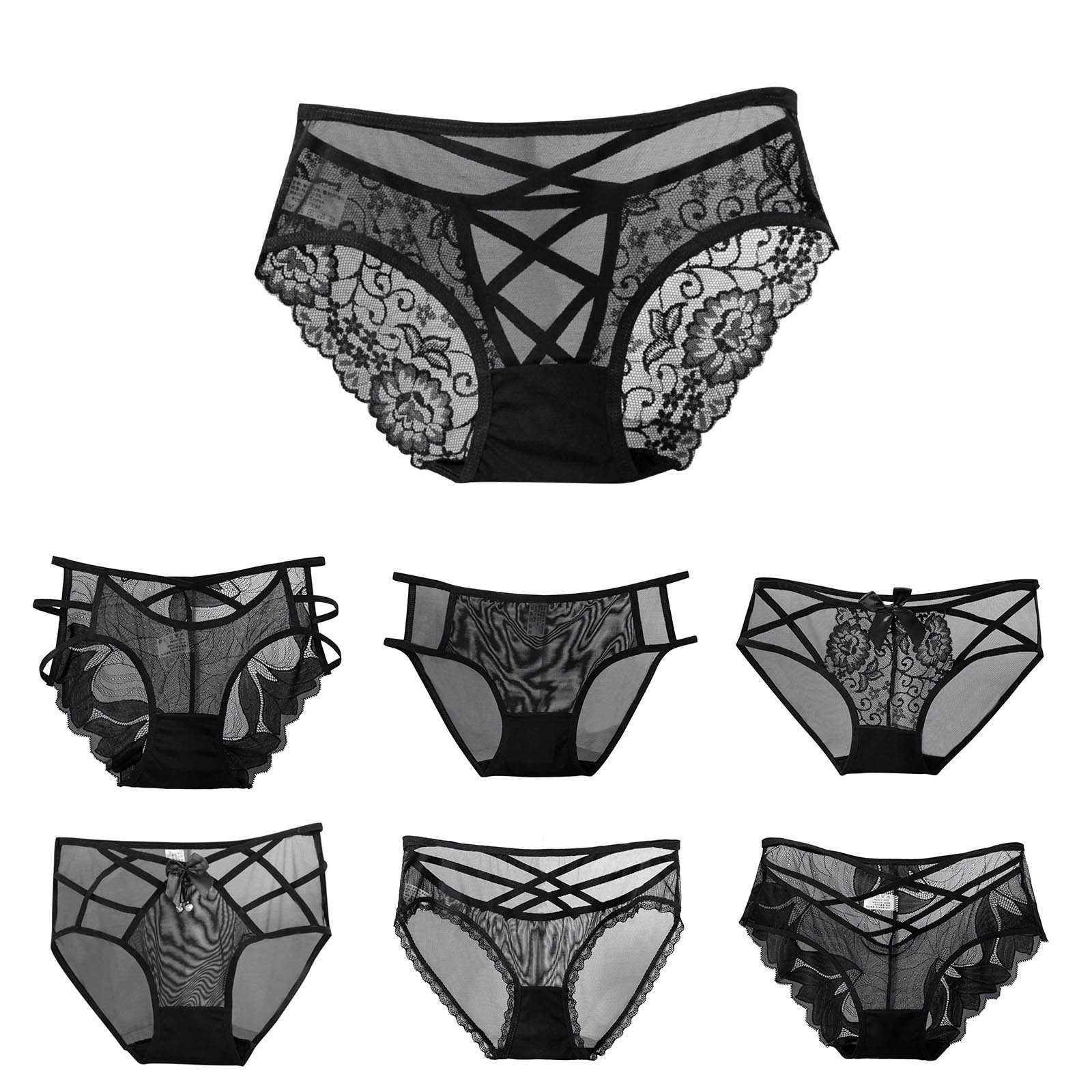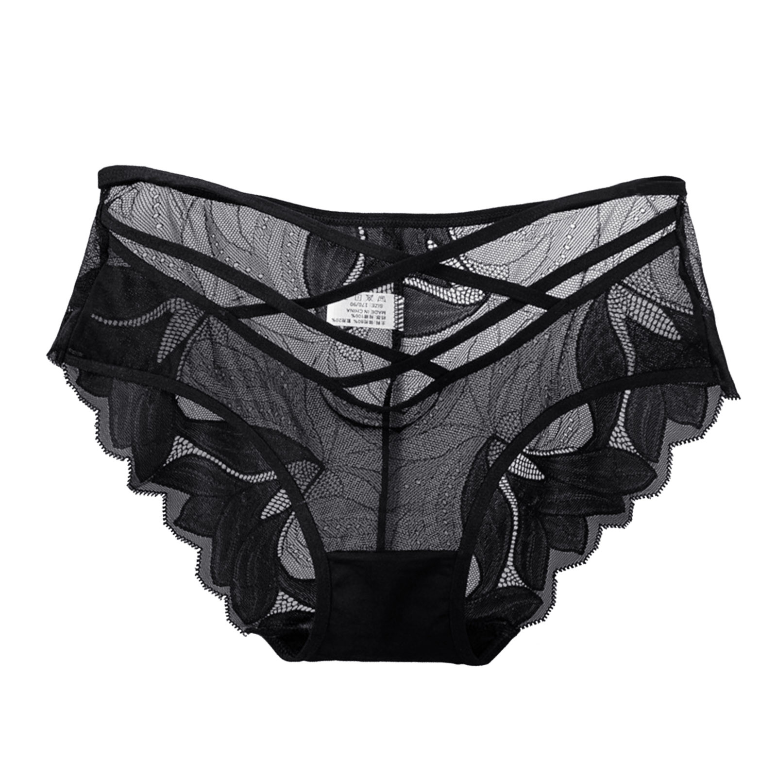 Womens Sexy Underwear Black Lace Panties High Waisted Plus Size Ladies Brief For Women