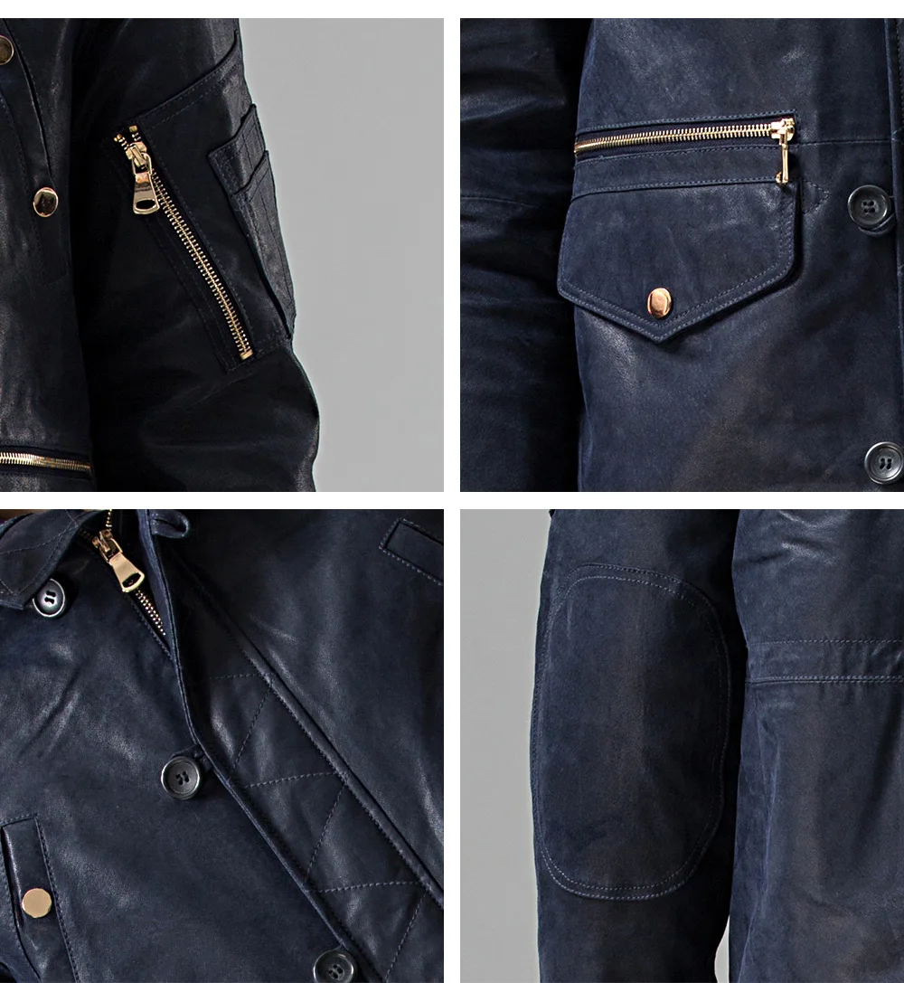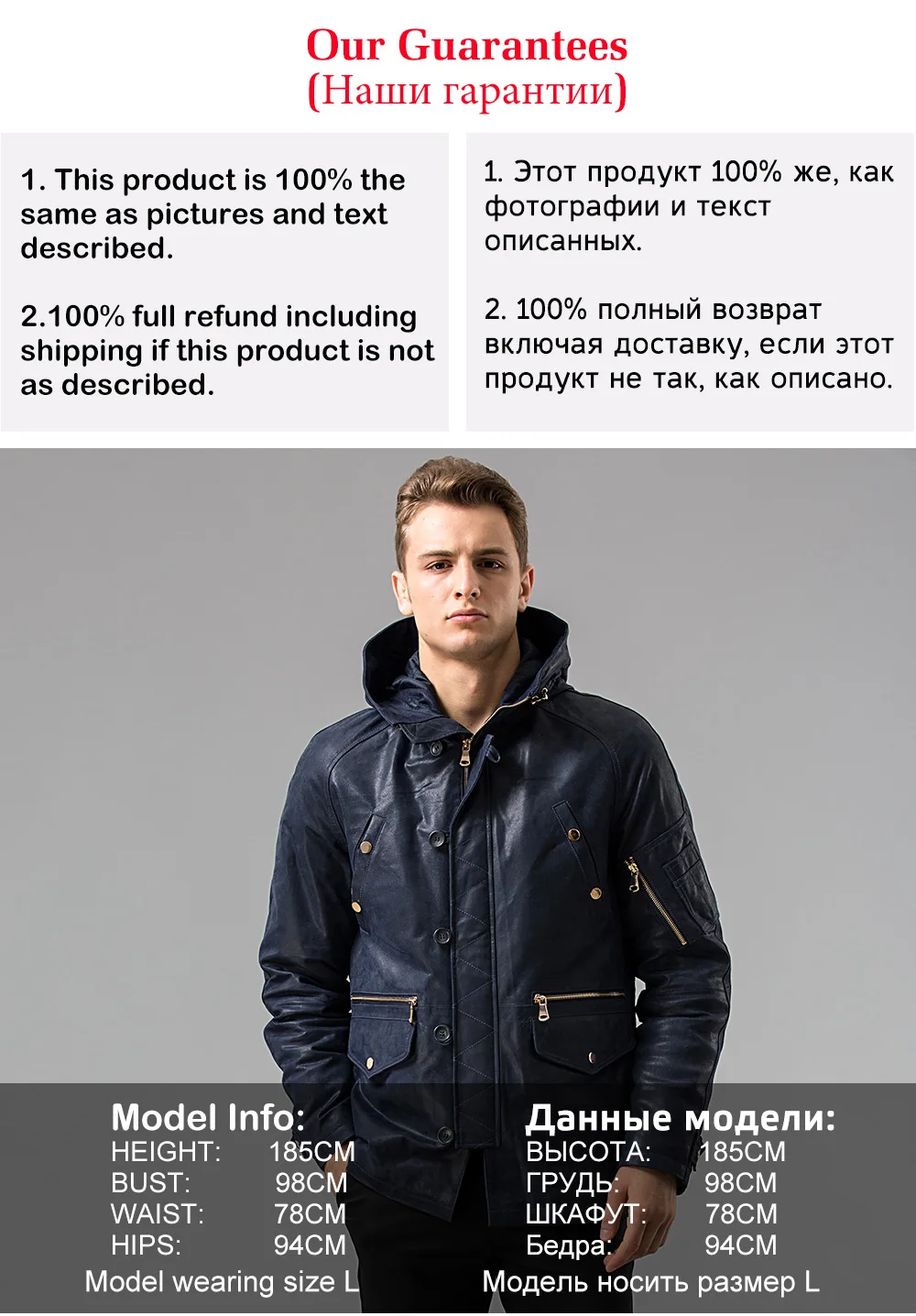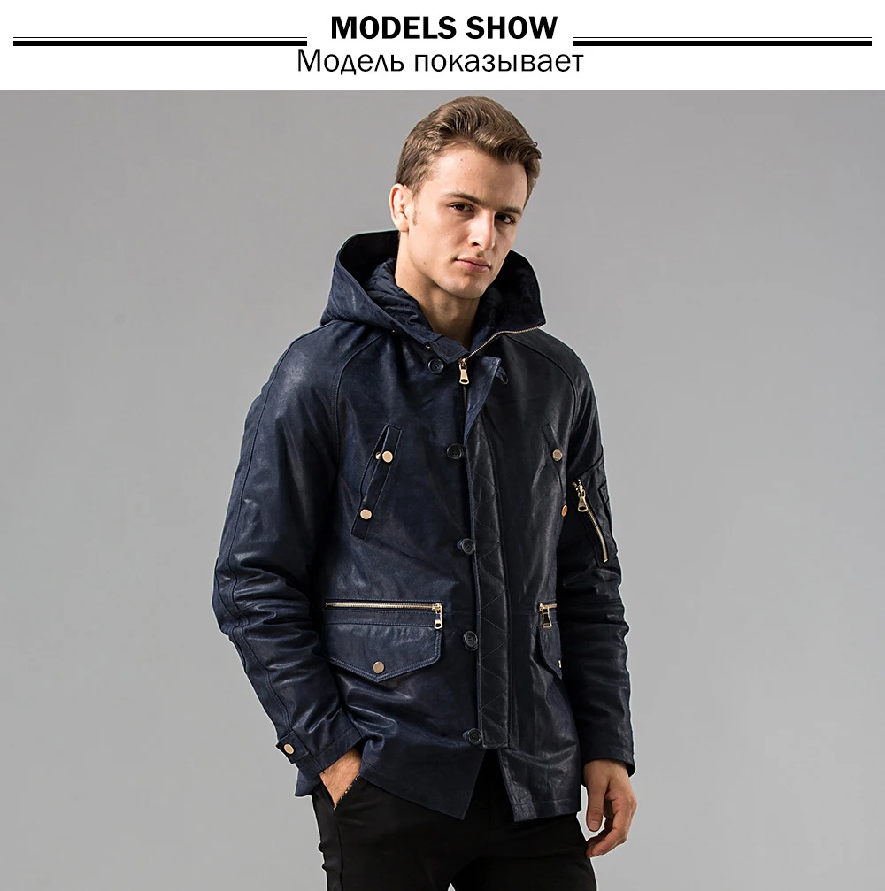 S-6XL Winter Men's Pigskin real leather jacket Hooded hat Detachable Genuine Leather jacket male overcoat
