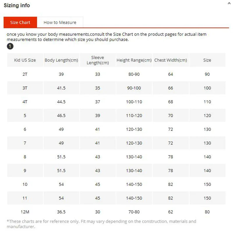 Size2T(90): Â Clothes length:39cm, Â bust:64cm, sleeve:33cm, Â Recommend height 80-90cm