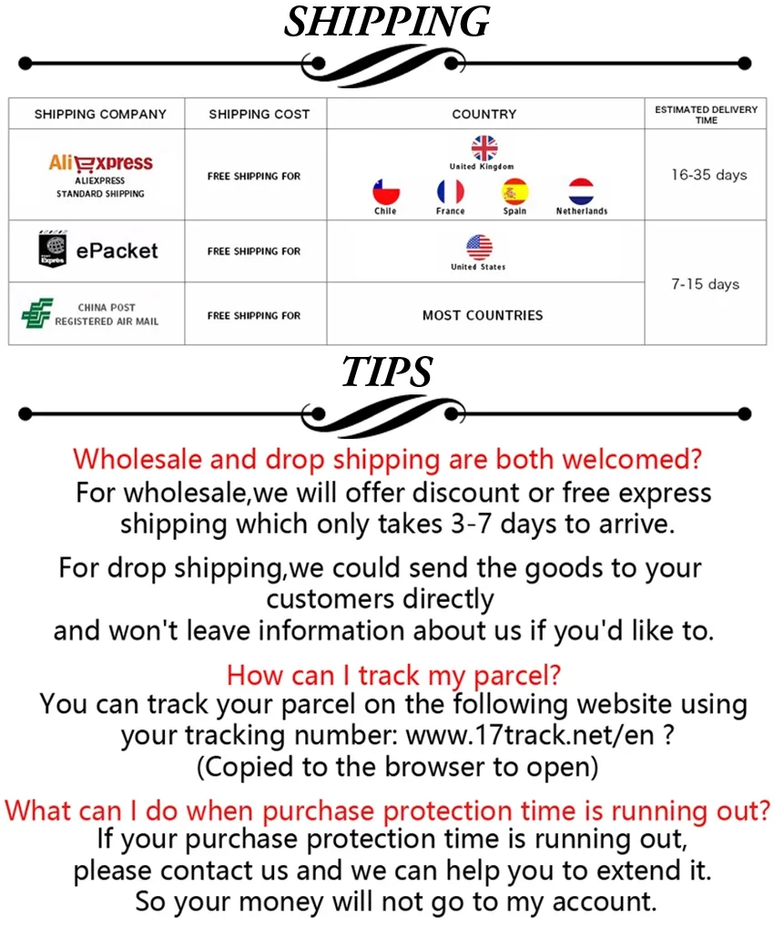 Note: 1 inch=2.54 cm Size mearsured by ourselves ,so sometimes it has 1-3cm mistakes. Please check the size carefully before you buy ;if you are not sure about size,please contact us first .Thanks!