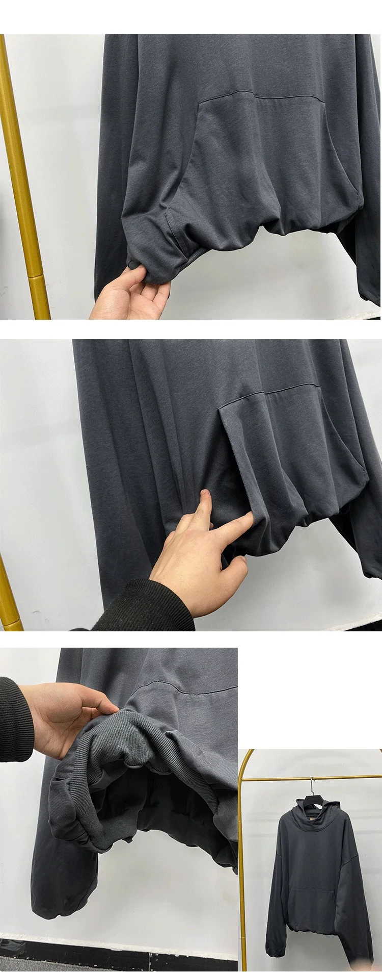 TYBURN High Quality Cotton Autumn Winter Personality Sweatshirt Hoodie Coat High Street Silhouette Double Layer Pullover Hoodie